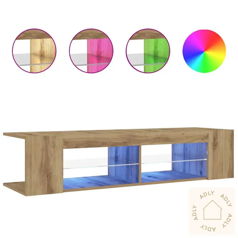 Produktet leveres med USB-kontakt og krever en sertifisert 5V USB-strømkilde (ikke inkludert) for å kunne bruke RGB LED-lysene optimalt.Farge: Artisan eikMateriale: Konstruert treMål: 135 x 39 x 30 cm (B x D x H)Leveres med 4 praktiske hyllerMontering kreves