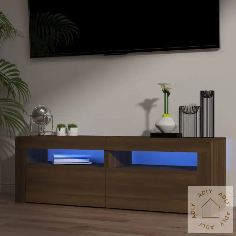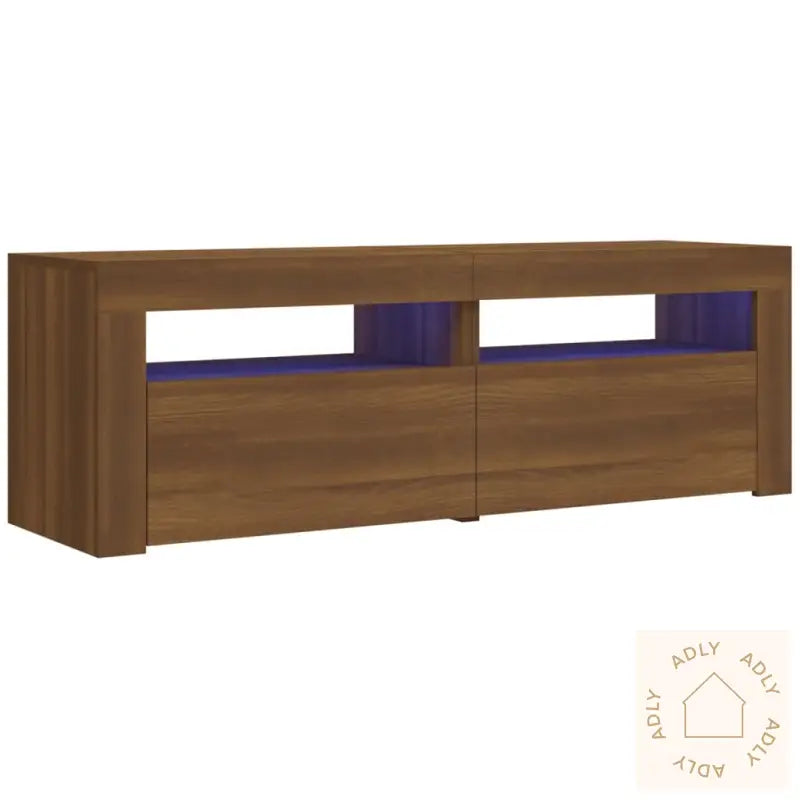 Produktet har USB-kontakt for LED lys, men den nødvendige 5V USB-strømkilden medfølger ikke.Farge: brun eik – en varm nyanse som gir karakter og naturlig sjarm, og lett matcher andre møbler.Materiale: konstruert tre som gir stabilitet og lang levetid.Mål: 120 x 35 x 40 cm (L x B x H), ideell størrelse for de fleste TV-er og stuer.Leveres med RGB LED-lysMontering kreves: ja