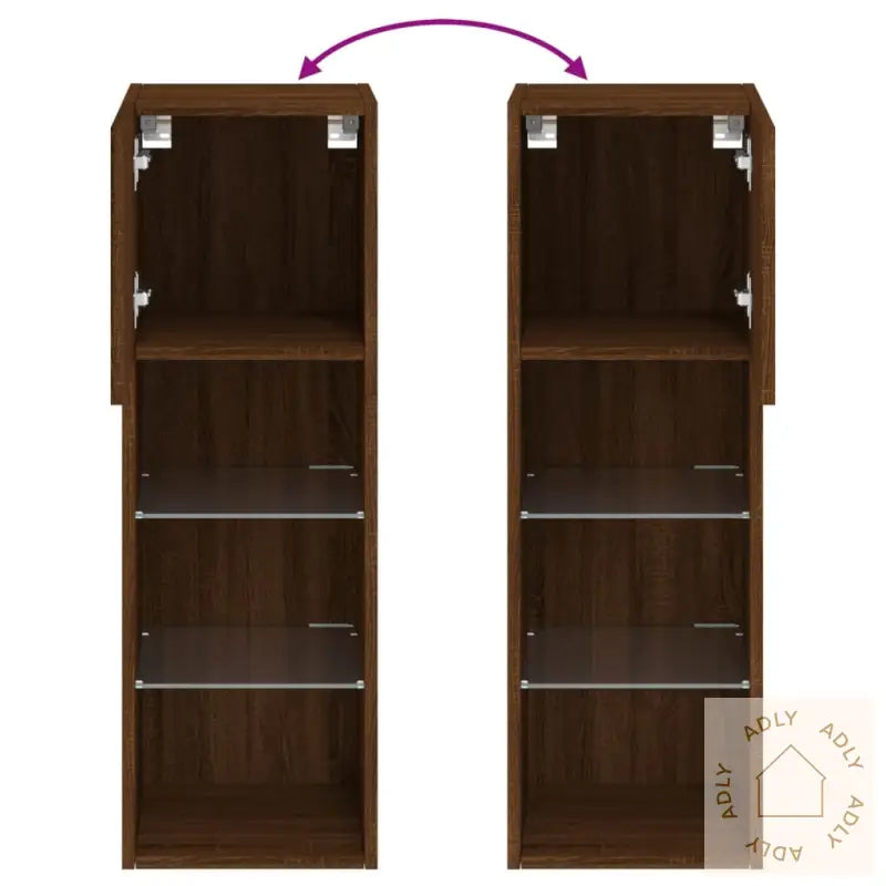 Skruer og plugger til montering på vegg følger ikke med, så sørg for å velge beslag som passer passende til din veggtype. Er du usikker på hva som er best, anbefales det å spørre en fagperson. Husk å følge monteringsanvisningen nøye for et sikkert og godt resultat.TV-benken kommer med USB-kontakt til RGB LED-lysene. Du trenger en sertifisert 5V USB-strømkilde (medfølger ikke) for å ta i bruk lysfunksjonen.Farge: brun eikMaterialer: konstruert tre, glassMål: 30,5 x 30 x 90 cm (L x B x H)Montering kreves: ja