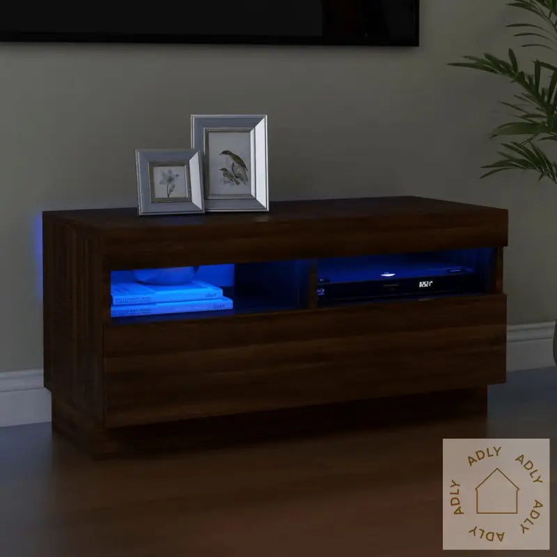 Den er laget av konstruert tre av høy kvalitet, som gir både styrke og holdbarhet. Den glatte overflaten er enkel å holde ren og tåler daglig bruk, samtidig som materialet har god motstand mot fuktighet – noe som gir deg et produkt som varer lenge.TV-benken har praktiske oppbevaringsrom som gjør det lett å holde stuen ryddig. Du kan enkelt samle fjernkontroller, spillekonsoller, blader og annet tilbehør på ett sted, slik at alt er innen rekkevidde.RGB LED-lysene gir deg muligheten til å tilpasse stemningen etter behov. Du kan velge mellom ulike farger og effekter via menyen, så du får nøyaktig det uttrykket du ønsker. LED-lysene gir også ekstra karakter til TV-benken og forsterker den trendy, moderne følelsen.Det rene, elegante designet med rette linjer sørger for at TV-benken i brun eik passer sømløst inn sammen med andre hagemøbler eller tradisjonelle møbler til hjemmet, og skaper et helhetlig uttrykk i rommet.Merk: