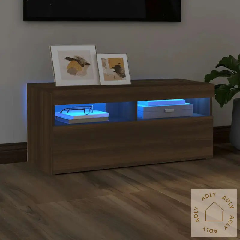 Praktisk materiale: TV-benken er laget av slitesterkt konstruert tre av høy kvalitet. Den glatte overflaten gjør det enkelt å holde rent, og materialet gir styrke, stabilitet og god motstand mot fukt, så du kan ha glede av benken lenge.God oppbevaringsplass: Du får rikelig med plass til å organisere medieutstyr, konsoller, dekor eller andre ting du vil ha lett tilgjengelig – perfekt for å holde området rundt TV-en ryddig.RGB LED-lys: Med integrerte RGB LED-lys kan du velge mellom flere ulike lysfarger og effekter, slik at du enkelt kan tilpasse stemningen i rommet. LED-lysene fremhever det moderne uttrykket til TV-benken, og gir en ekstra trendy touch — ideelt hvis du ønsker unike møbler til hjemmet med det lille ekstra.Stilrent utseende: De rette linjene og det elegante formspråket gjør at TV-benken glir sømløst inn i de fleste typer interiør, enten du går for en klassisk, minimalistisk eller mer moderne stil.Merk: