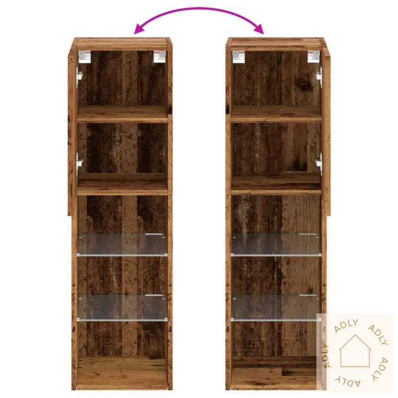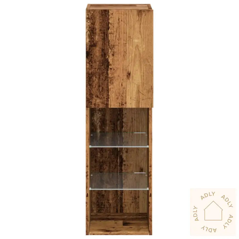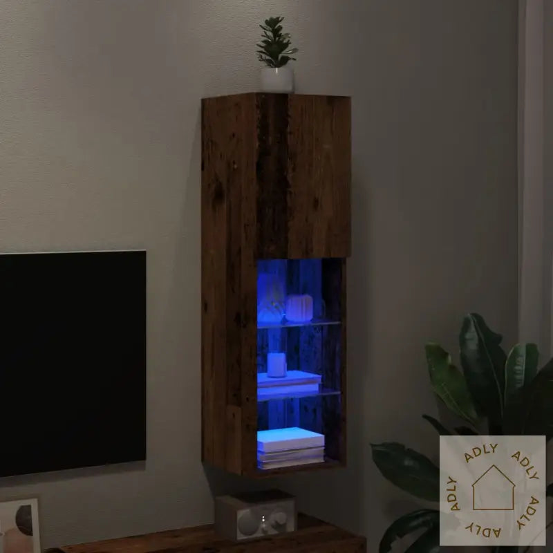 Skruer og plugger for veggmontering følger ikke med. For sikker og stabil montering bør du bruke skruer og plugger som passer akkurat til dine vegger, eller kontakte en profesjonell om du er usikker. Følg monteringsanvisningen nøye.TV-benken leveres med USB-kontakt for RGB LED-lysene, så du trenger en sertifisert 5V USB-strømkilde (ikke inkludert).Farge: gammelt treMateriale: konstruert tre, glassMål: 30,5 x 30 x 102 cm (L x B x H)Montering nødvendig: ja