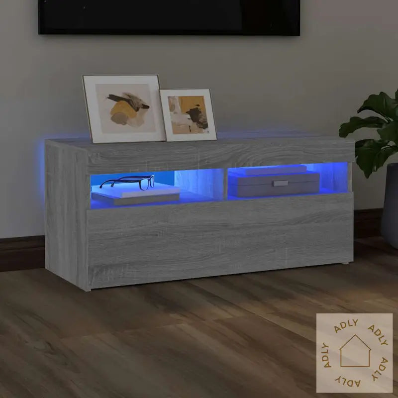 Praktisk materiale: Det konstruerte treverket har en jevn, elegant overflate, er svært robust, stabilt og tåler fuktighet godt. Dette gjør TV-benken både holdbar og enkel å rengjøre – perfekt for daglig bruk i hjemmet.God oppbevaringsplass: Benken har romslige oppbevaringsrom, noe som gir mulighet til å organisere alt fra fjernkontroller til medieutstyr pent på plass. Du får enklere orden og et ryddigere uttrykk rundt underholdningssenteret.RGB LED-lys: Integrerte RGB LED-lys sørger for fleksibel belysning der du kan bytte mellom ulike farger etter ønske eller la lysene skifte automatisk. Dette gir et trendy preg og hjelper deg å sette stemningen – enten du ser film, hører på musikk, eller bare vil ha litt kult lys på stua.Stilig utseende: Den minimalistiske formen, rene linjer og grå eikefinish gir TV-enheten et sofistikert uttrykk. Benken glir rett inn sammen med andre hagemøbler, bokhyller og stående hyller, og passer inn i både moderne og klassiske interiører.Merk: