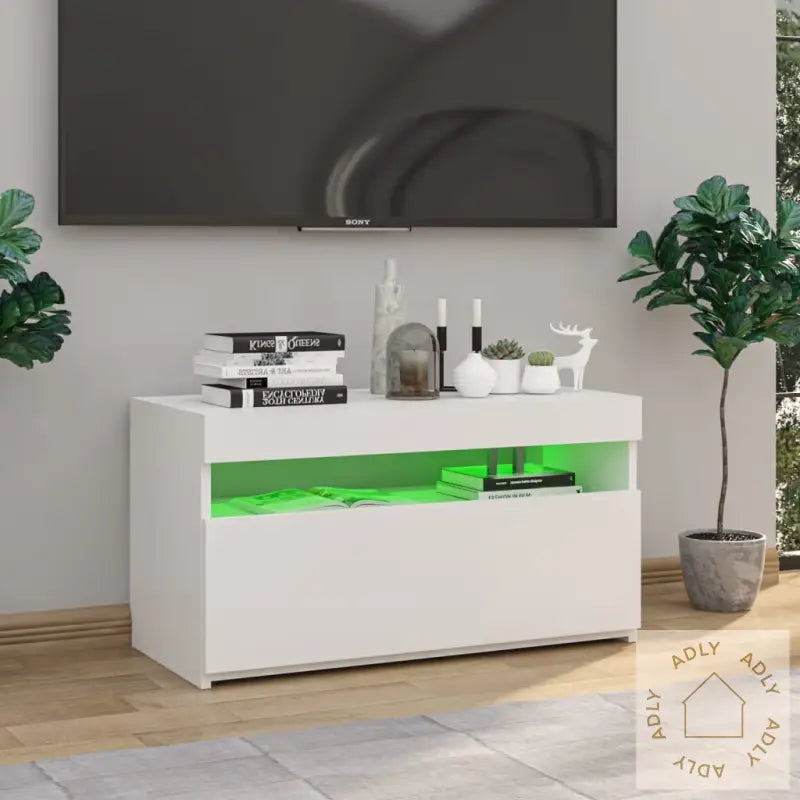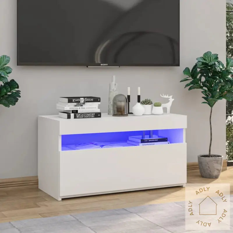 Fargerikt LED-lys: Løft stemningen i rommet ditt med innebygde RGB LED-lys! De fargerike lysene gir en levende og koselig atmosfære, perfekt for alt fra filmkvelder til avslapning etter en lang dag.Moderne stil: Dette medieskapet har en moderne stil med rene linjer og minimalistisk preg, slik at det enkelt glir inn sammen med resten av interiøret ditt. TV-benken gir rommet et friskt og tidsriktig uttrykk, samtidig som den lar naturlig lys og teknologiske detaljer smelte sømløst sammen.Rikelig med oppbevaringsplass: Med flere rom og hyller er det lett å holde orden på elektronikk, fjernkontroller og annet tilbehør. Oppbevaringsplassen sørger for at stuen din forblir både ryddig og funksjonell.Merk: