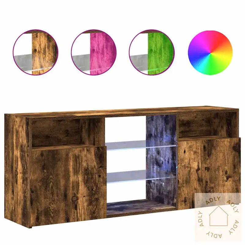 Denne TV-benken med LED lys har et moderne og praktisk design som virkelig trekker oppmerksomheten og setter et stilfullt preg på rommet ditt.