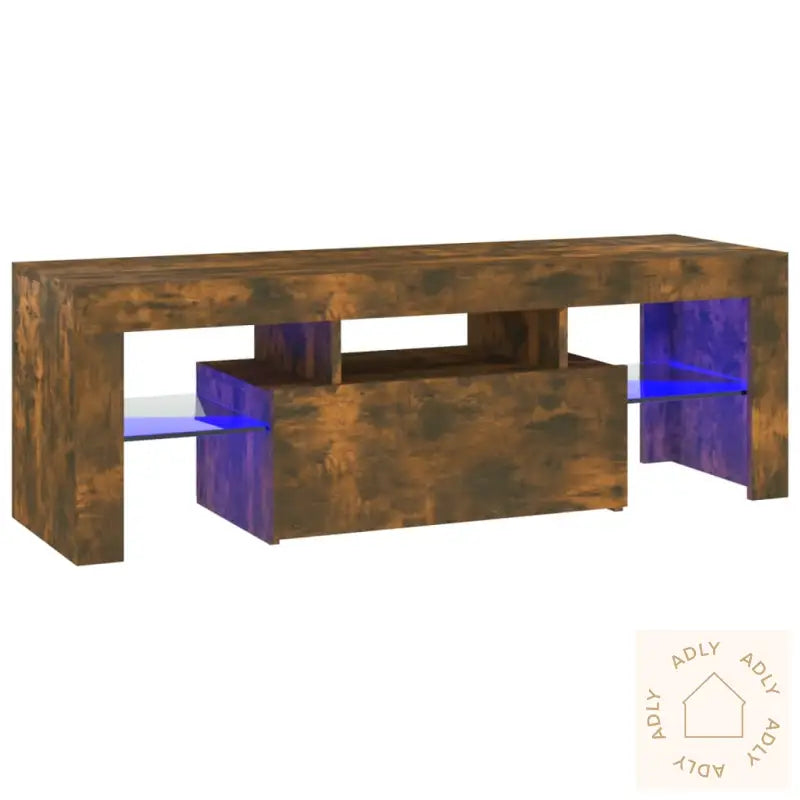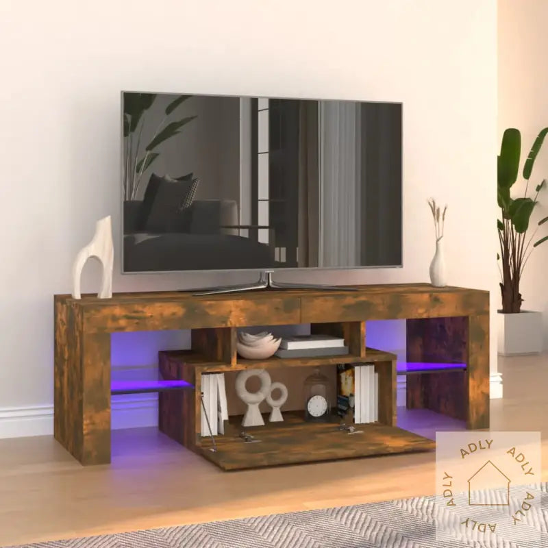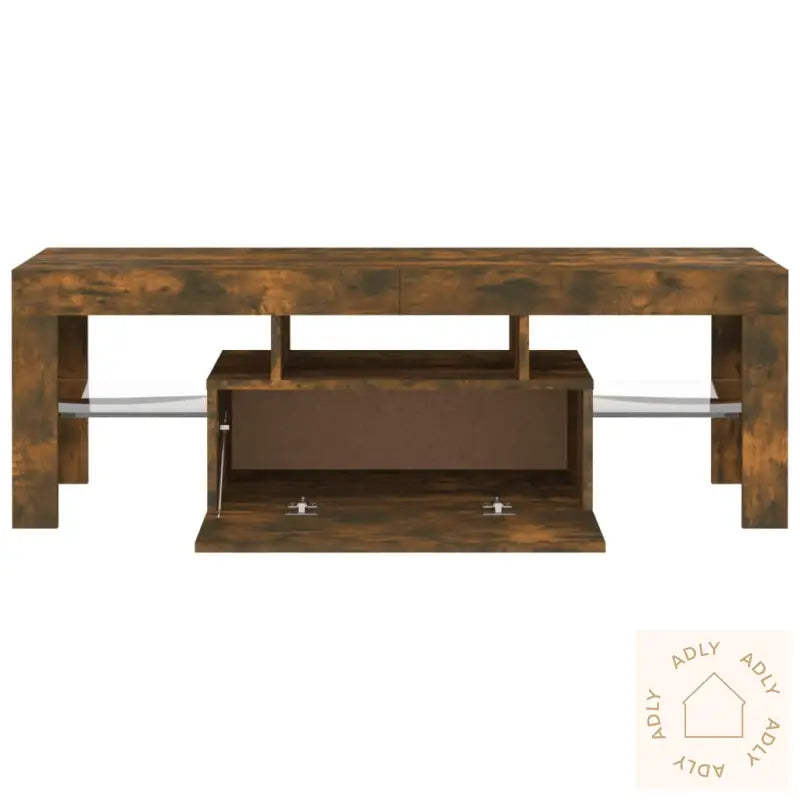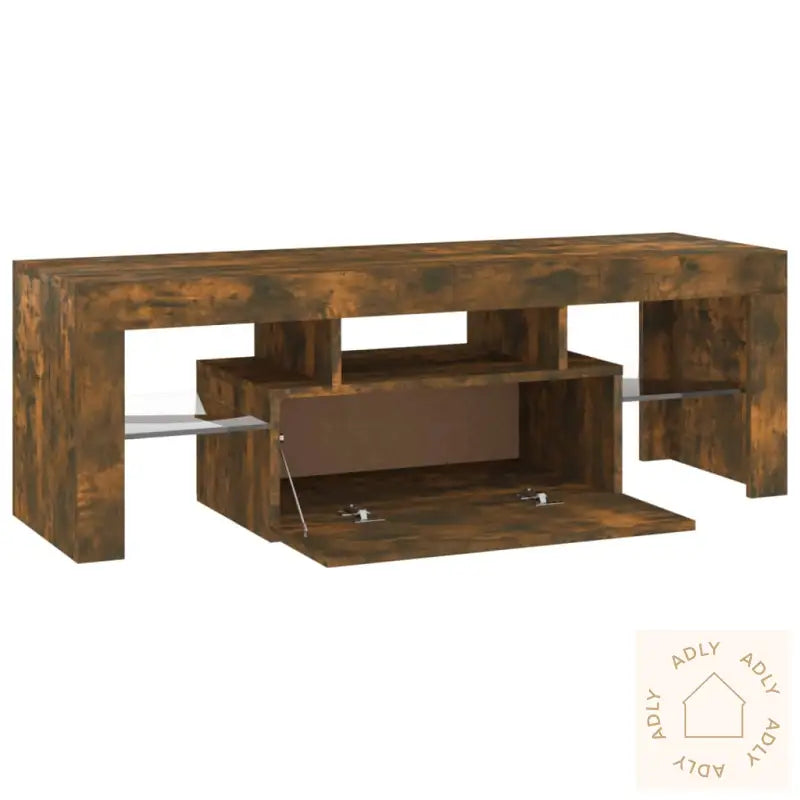 Det slitesterke konstruerte treverket gir en jevn overflate og sørger for at benken er både stødig, holdbar og motstandsdyktig mot fuktighet. Dette materialet er enkelt å holde rent, noe som gjør TV-benken ideell for daglig bruk.Oppbevaringsløsningene gir god plass til å organisere alt av tilbehør og elektronikk, slik at du får et ryddig og oversiktlig TV-område uten rot.RGB LED-lysene har flere fargeinnstillinger, som lar deg endre stemningen etter behov – enten du vil ha behagelig belysning til filmkvelden, eller et moderne preg når du har gjester. Belysningen bidrar til følelsen av et trendy hjem, og fremhever benkens design på en unik måte.De rette linjene og det stilrene uttrykket gjør at benken matcher mange ulike typer interiør, og tilfører en smakfull og oppdatert look til dine møbler.Merk: