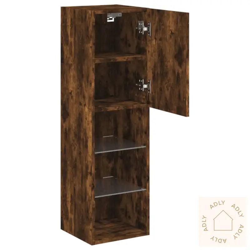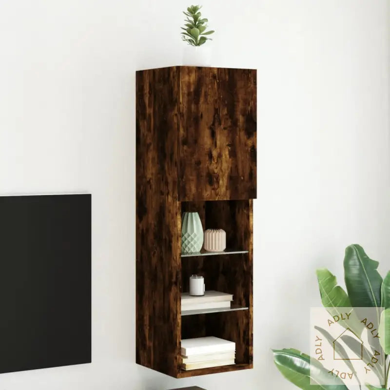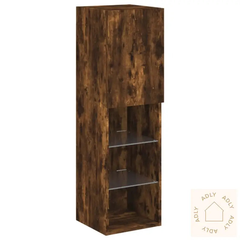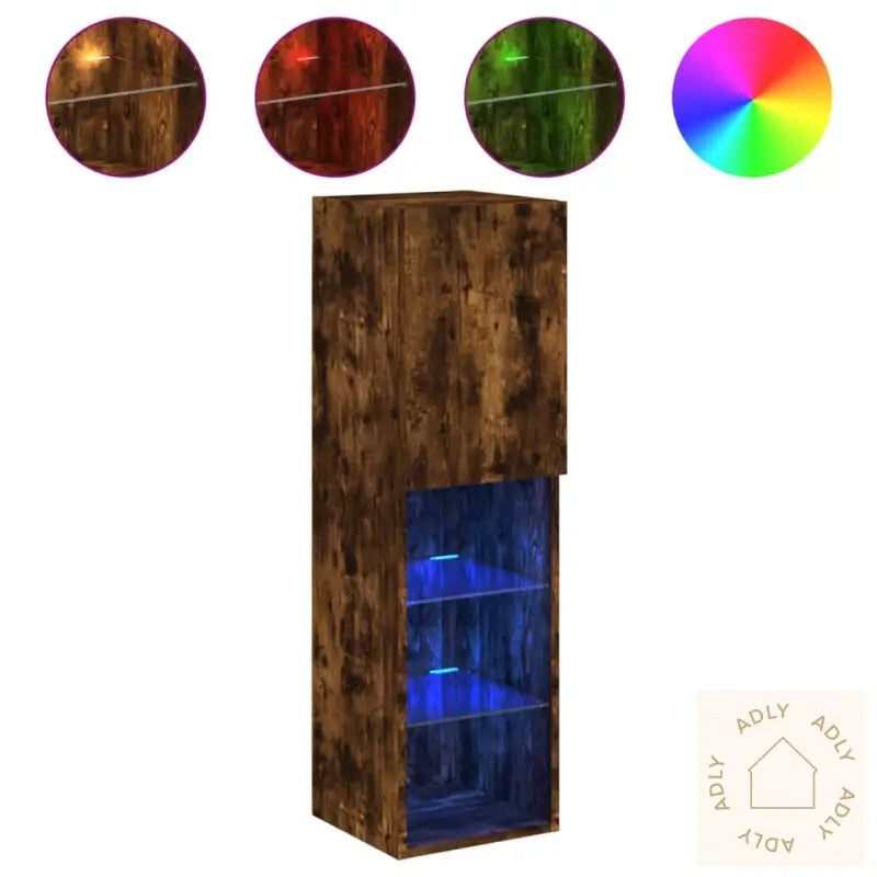 Skruer og plugger til montering følger ikke med, så pass på å velge varianter som passer til veggen din. Hvis du er usikker, anbefales det å spørre en fagperson. Følg monteringsanvisningen nøye for best resultat.TV-benken har USB-kontakt for RGB LED-lysene, og krever separat sertifisert 5V USB-strømkilde (ikke inkludert).Farge: røkt eikMaterialer: konstruert tre, glassMål: 30,5 x 30 x 102 cm (L x B x H)Montering kreves: jaOppgrader stua med denne moderne TV-benken og skap en mer koselig og funksjonell atmosfære med RGB LED-lys. Kombiner gjerne med andre møbler til hjemmet for et helhetlig preg.