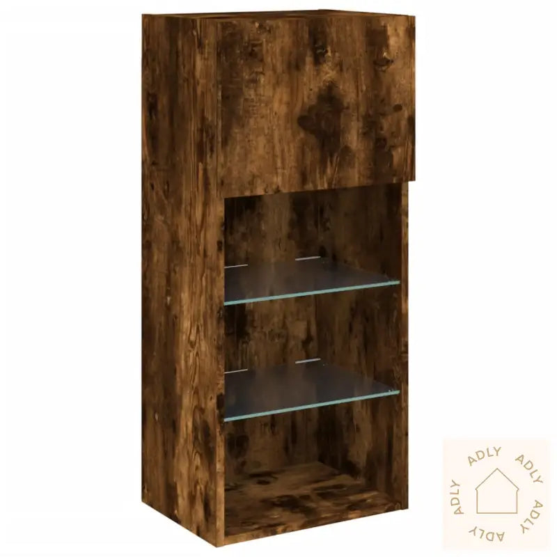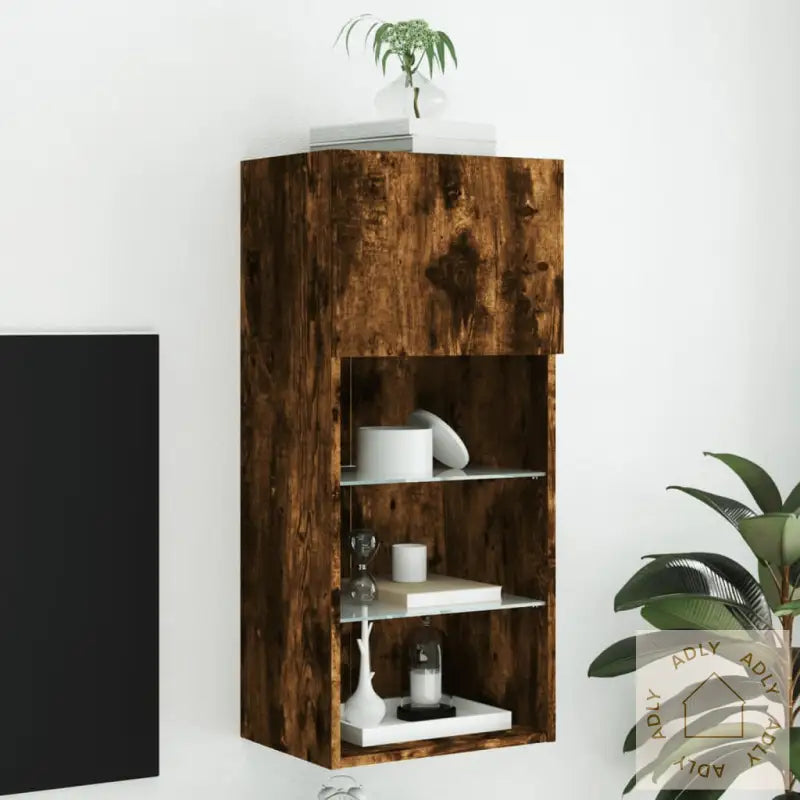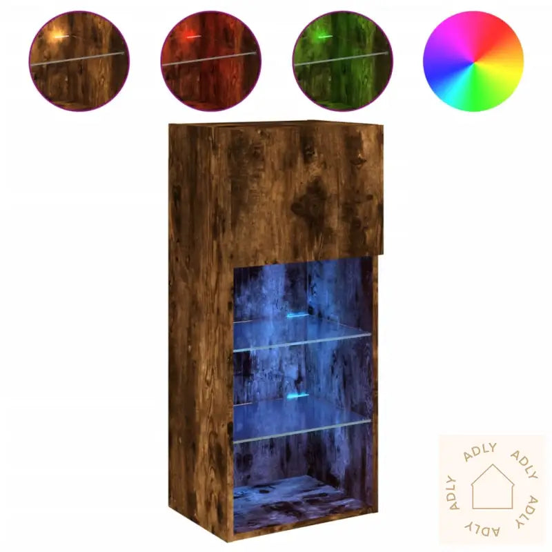 Slitesterkt materiale: TV-benken er laget av konstruert treverk med en røkt eik-finish, som gir både styrke, stabilitet og motstandsdyktighet mot fukt. Dette gjør den ekstra solid, holdbar og enkel å vedlikeholde, slik at den holder seg pen lenge.Rikelig lagringsplass: Denne TV-enheten sørger for god lagringsplass til alt av elektronikk og småting, enten det gjelder DVD-spillere, mottakere, fjernkontroller eller konsollspill. Alt kan organiseres og oppbevares ryddig og lett tilgjengelig.RGB LED-lys: Med integrerte RGB LED-lys blir dette medieskapet ikke bare praktisk, men også et skikkelig blikkfang. Du får ulike lysmenyer og kan endre fargen på lysene så de passer stemningen, eller la fargene skifte automatisk for ekstra effekt når du har besøk eller ser film. Kompatibel med 5V USB-strømkilde (ikke inkludert).Veggmontert design: Det plassbesparende veggmonterte designet gjør det enkelt å maksimere gulvplassen, samtidig som området rundt blir både luftigere og enklere å holde ryddig. Perfekt for små leiligheter eller moderne hjem hvor smarte løsninger trengs.Godt å vite: