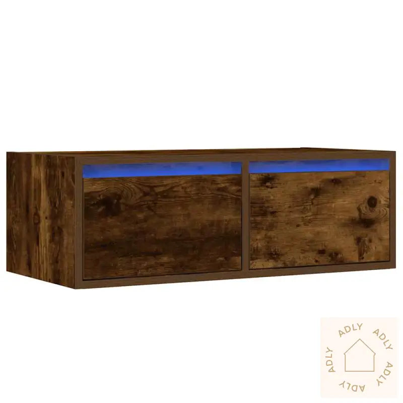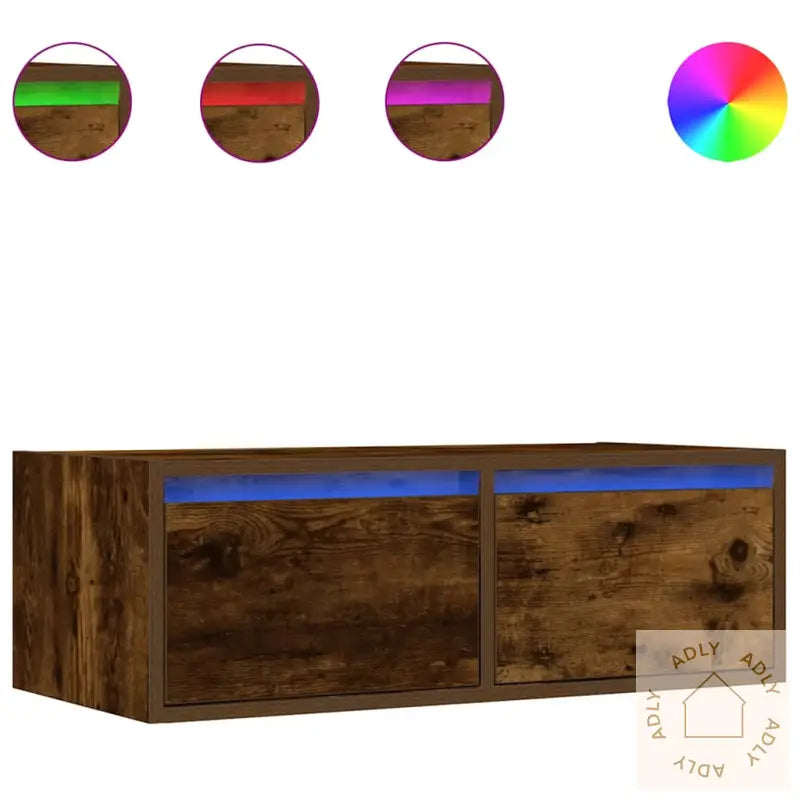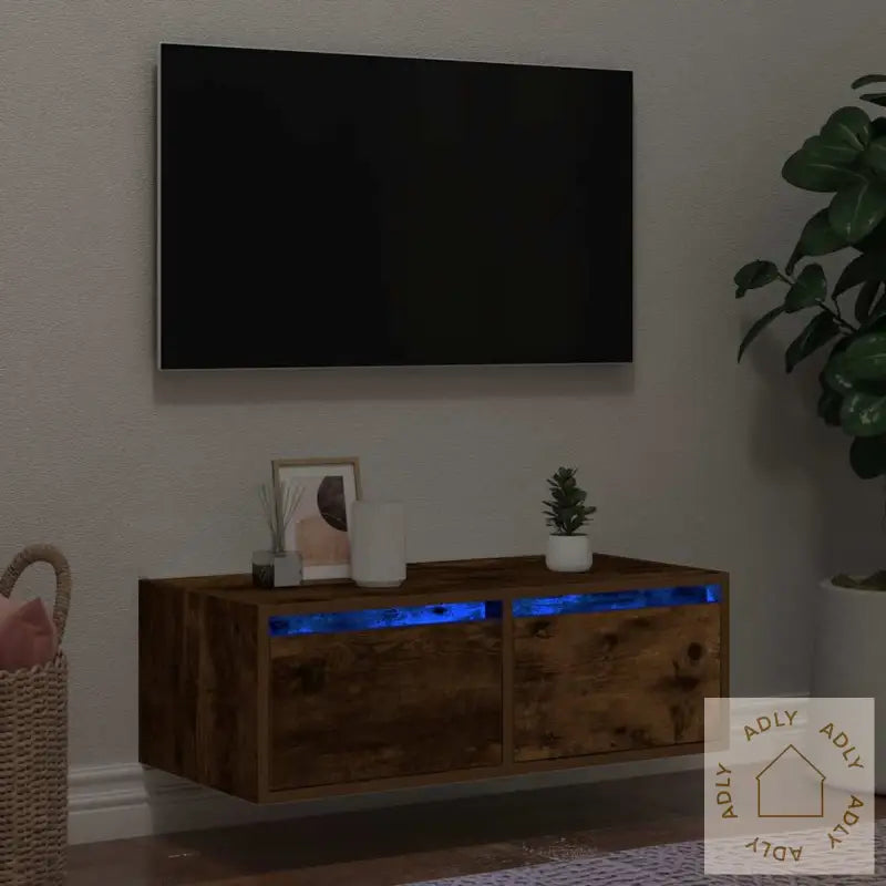 Skruer og plugger til veggmontering følger ikke med. Husk å bruke festemateriale som passer til veggene dine, eller ta kontakt med en fagperson hvis du er usikker. Følg monteringsanvisningen nøye.TV-benken har USB-kontakt for LED-lysene, og krever en sertifisert 5V USB-strømkilde (ikke inkludert).Farge: røkt eikMateriale: konstruert treSamlet mål: 75 x 35,5 x 25 cm (B x D x H)Mål skuff: 35 x 28,5 x 19 cm (B x D x H)Montering kreves: jaMøbler som dette tilfører rommet et moderne og koselig preg, og er både funksjonelle og dekorative. Passer perfekt sammen med andre møbler til hjemmet, uansett om stilen er klassisk eller moderne.