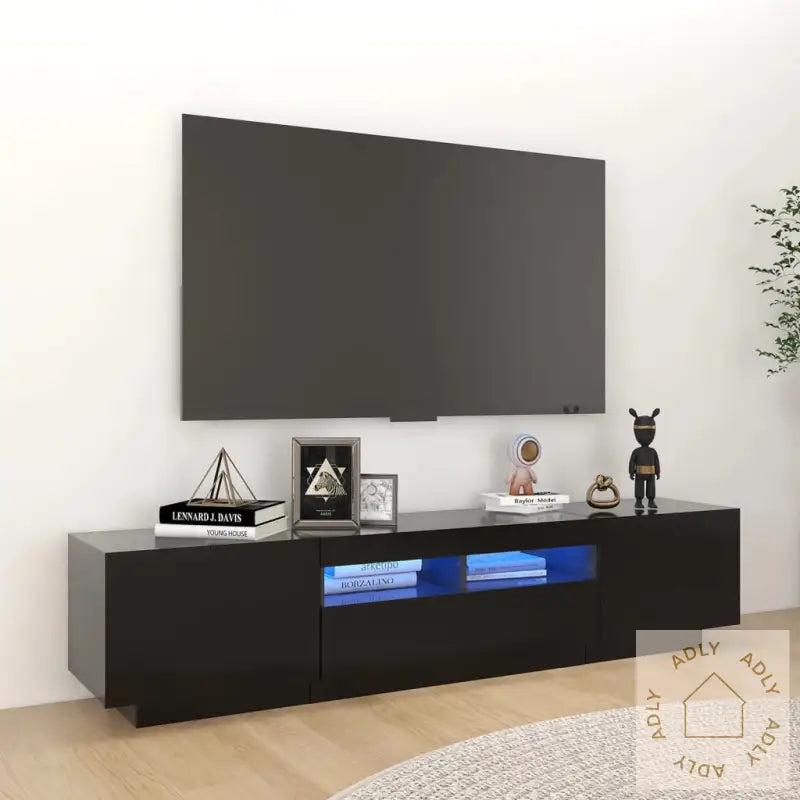 Denne stilige TV-benken med RGB LED-lys gir et moderne løft til stua og vil raskt bli et blikkfang i hjemmet. Med sitt praktiske design passer den utmerket sammen med annet interiør eller som et unikt statement-møbel. Den solide konstruksjonen av konstruert tre gjør den slitesterk og langvarig, noe som sikrer at du får glede av dine møbler til hjemmet i mange år.