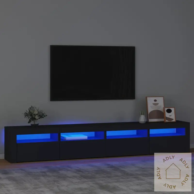 Produktet kommer med USB-kontakt til RGB LED-lysene. Husk at sertifisert 5V USB-strømkilde må kjøpes separat.Monteringsveiledning følger med for enkel og rask oppsetting, slik at du kan ta TV-benken i bruk uten stress.Farge: svartMateriale: konstruert treStørrelse: 240 x 35 x 40 cm (L x B x H)Med RGB LED-lysLeveransen inneholder:1 x TV-benk (midt)2 x TV-benker (side)Velg denne TV-benken med LED lys for deg som vil kombinere funksjonalitet med stilig design og fleksible belysningsmuligheter. En perfekt løsning for deg som setter pris på innovative møbler til hjemmet og ønsker en praktisk, men dekorativ, hylle under TV-en.