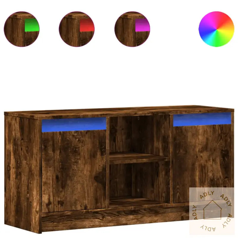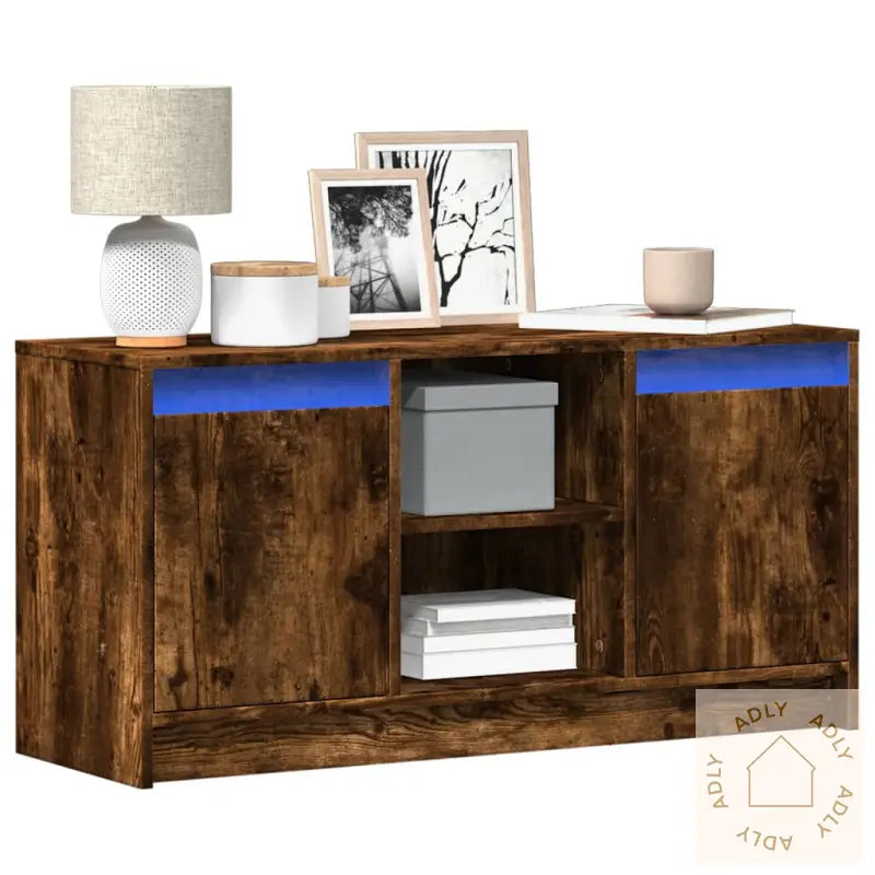Holdbart materiale: Den er laget av robust konstruert treverk, kjent for sin eksepsjonelle kvalitet. Overflaten er glatt og lett å rengjøre, og hele benken har høy styrke, stabilitet og tåler fukt godt – noe som gjør den ekstra slitesterk sammenlignet med andre møbler til hjemmet.RGB LED-lys for stemningsfull belysning: TV-benken er utstyrt med justerbare LED-lys som lar deg endre farger, modus og lysstyrke etter humør eller anledning. Skap en hyggelig atmosfære foran TV-en eller imponer gjestene med et personlig lysshow – alt dette gir ekstra feelgood i rommet.God og oversiktlig oppbevaring: Du får rikelig med plass til magasiner, bøker, DVD-er eller multimedieenheter. Alt kan organiseres ryddig og du har det lett tilgjengelig når du ser på film eller samler familie og venner foran TV-en.Stødig og solid bordplate: Bordplaten har maksimal lastekapasitet på 80 kg, noe som gir trygg støtte til TV, stereoanlegg eller dekorasjoner som vaser og potteplanter. Dette er praktisk for alle som ønsker fleksible møbler til hjemmet.Godt å vite: