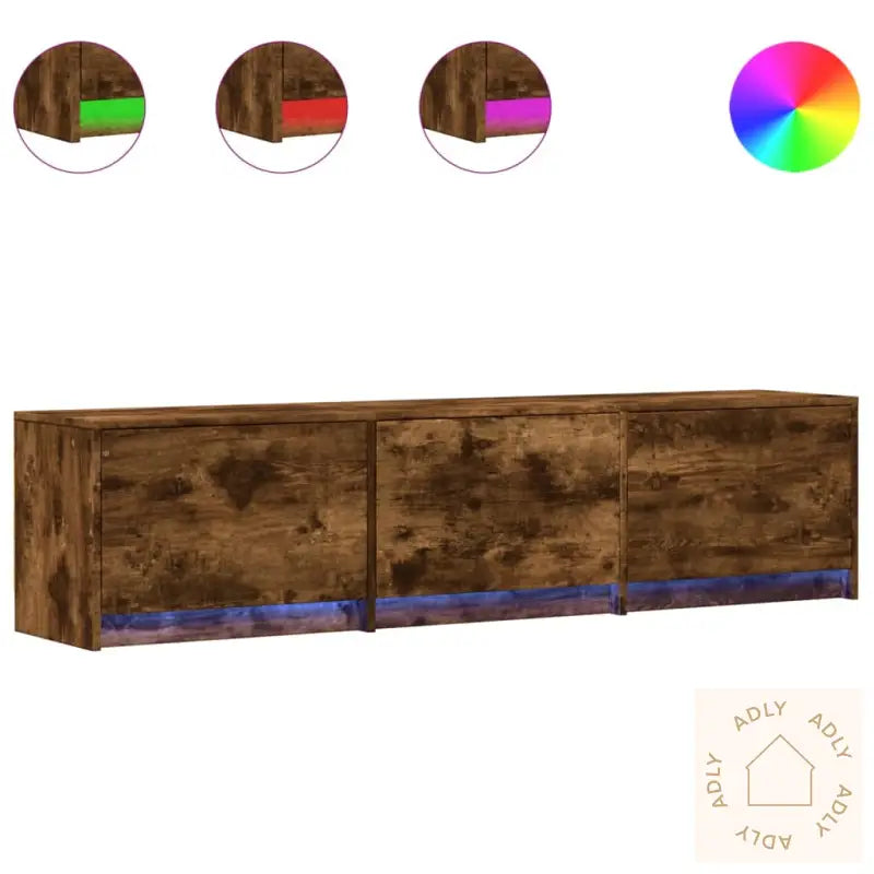 Holdbart materiale: Bygget i førsteklasses konstruert tre, har denne TV-benken en jevn og solid overflate. Materialet gir økt styrke, god stabilitet og tåler fuktighet, noe som gjør det perfekt for ulike typer møbler til hjemmet.RGB LED-lys for stemningsfull belysning: Juster LED-lyset for å lage en atmosfære som passer deg – velg blant forskjellige farger, juster lysstyrken eller velg mellom flere moduser for å få den rette stemningen når du ser TV eller bare vil ha litt ekstra kos i rommet.Rikelig med oppbevaringsplass: Benken tilbyr godt med lagringsplass, slik at du kan holde alt fra magasiner, bøker, DVD-filmer, multimedieenheter og småting godt organisert og lett tilgjengelig. Enten du trenger plass til hjemmekinoanlegget eller ønsker å kombinere TV-benken med bokhyller og stående hyller, passer denne inn.Solid og stabil bordplate: Den robuste topplaten tåler en maksimal lastekapasitet på opptil 60 kg totalt og 20 kg per hyllelag, så du kan trygt plassere både store TV-modeller, stereoanlegg eller dekorative elementer som vaser og grønne planter.Godt å vite:
