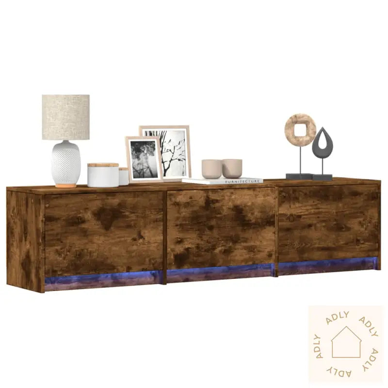 Denne TV-benken med LED-lys gir en moderne touch til hjemmet, samtidig som den er praktisk utformet og kommer til å tiltrekke seg oppmerksomhet i stuen.