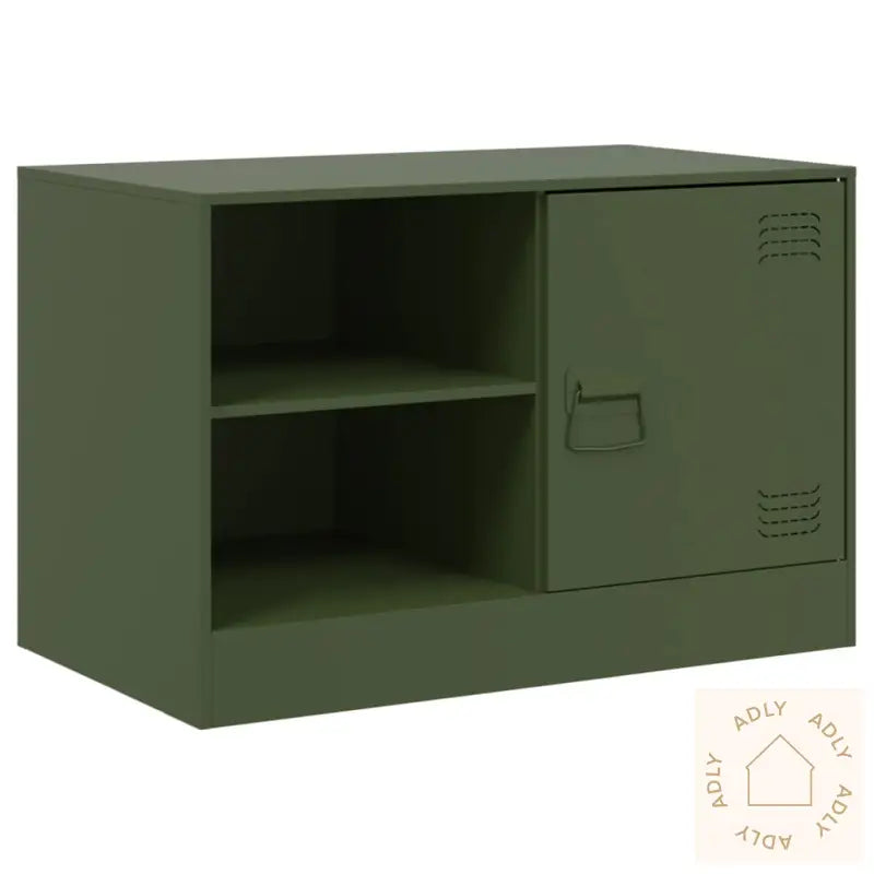 Stabilt materiale: Rammen på TV-benken er laget av kaldvalset stål – dette materialet kjennetegnes av høy styrke, slitestyrke og en jevn finish. Kaldvalset stål sikrer at benken står støtt over tid, og gir den samtidig en kul, industriell look som passer inn i mange ulike interiørstiler. Dette gjør den også minst like robust som utendørsmøbler eller hagemøbler.Rikelig med lagringsplass: Skapet har god plass til oppbevaring, slik at du enkelt kan holde orden på magasiner, bøker, fjernkontroller og alt annet du ønsker å ha lett tilgjengelig – alt samlet på ett sted rett ved TV-en.Enkelt å vedlikeholde: Overflaten er enkel å tørke av med en fuktig klut, så du slipper å bekymre deg for flekker eller ekstra vedlikehold i hverdagen.Praktisk håndtak: TV-benken har et solid metallhåndtak som gjør det lett å åpne og lukke døren. Dette gir både økt brukervennlighet og setter et dekorativt preg på møbelet.Farge: OlivengrønnMateriale: Kaldvalset stålMål: 67 x 39 x 44 cm (B x D x H)Passer for TV-skjermer: 51–76 cmMaksimal lastekapasitet: 160 kgTo romslige hyllerEtt lukket rom med dørMetallhåndtak for enkel brukLeveres flatpakket – montering kreves
