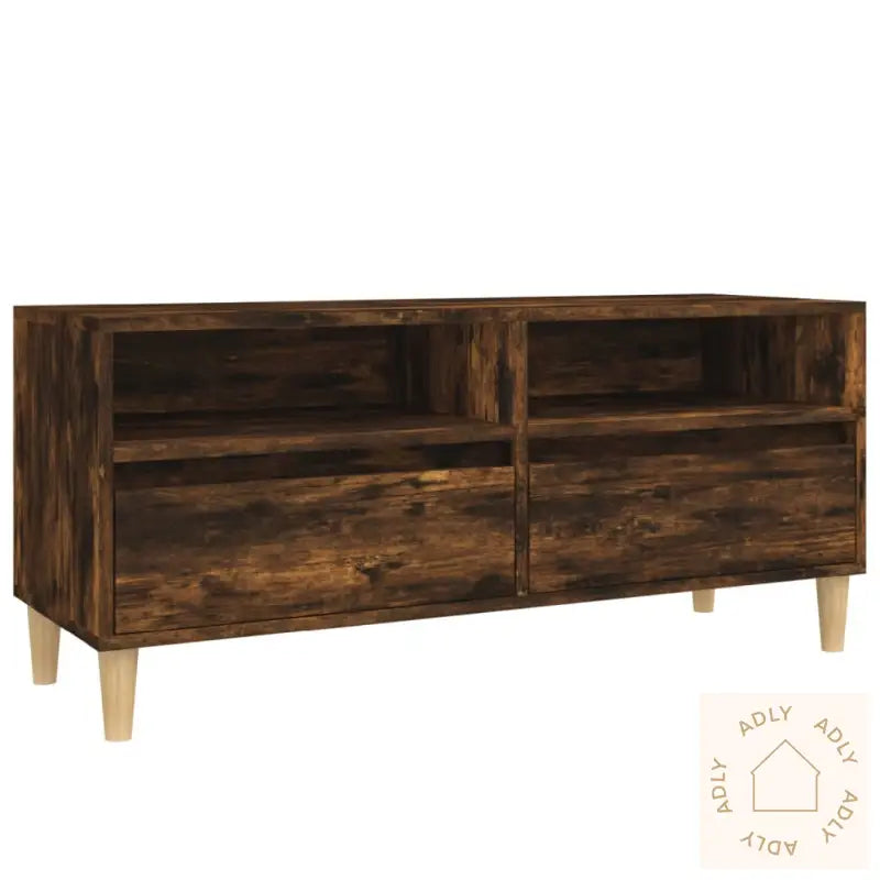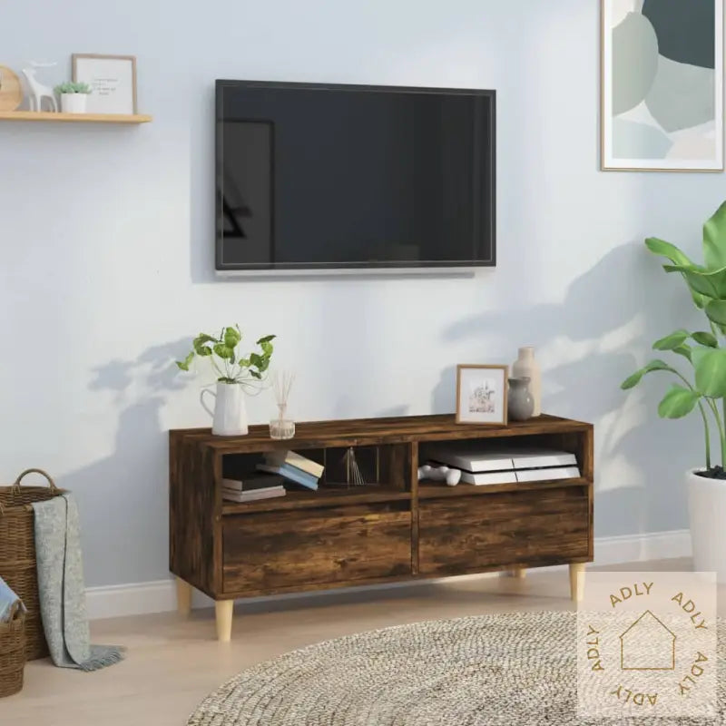 Slitesterkt materiale: TV-benken er laget av konstruert treverk av høy kvalitet med en glatt finish, noe som gir både styrke og stabilitet. Materialet tåler daglig bruk og er motstandsdyktig mot fuktighet, så den holder seg pen over tid.Rikelig lagringsplass: Med sitt smarte design byr benken på god plass til å organisere alt fra DVD-spillere, spillkonsoller og strømmeenheter til fjernkontroller og andre mediebærere. Alt du trenger for underholdning er lett tilgjengelig, samtidig som det er skjult for å gi et ryddig inntrykk.Visningsmuligheter: På toppen av medieskapet får du rom til å vise frem favorittbilder, dekorasjoner eller grønne planter og blomster. Dette gjør møbelet til et naturlig samlingspunkt, ikke ulikt mange populære bokhyller og stående hyller.Farge: Røkt eikMaterialer: Konstruert tre, eukalyptustreMål: 100 x 34,5 x 44,5 cm (L x B x H)Montering kreves: Ja