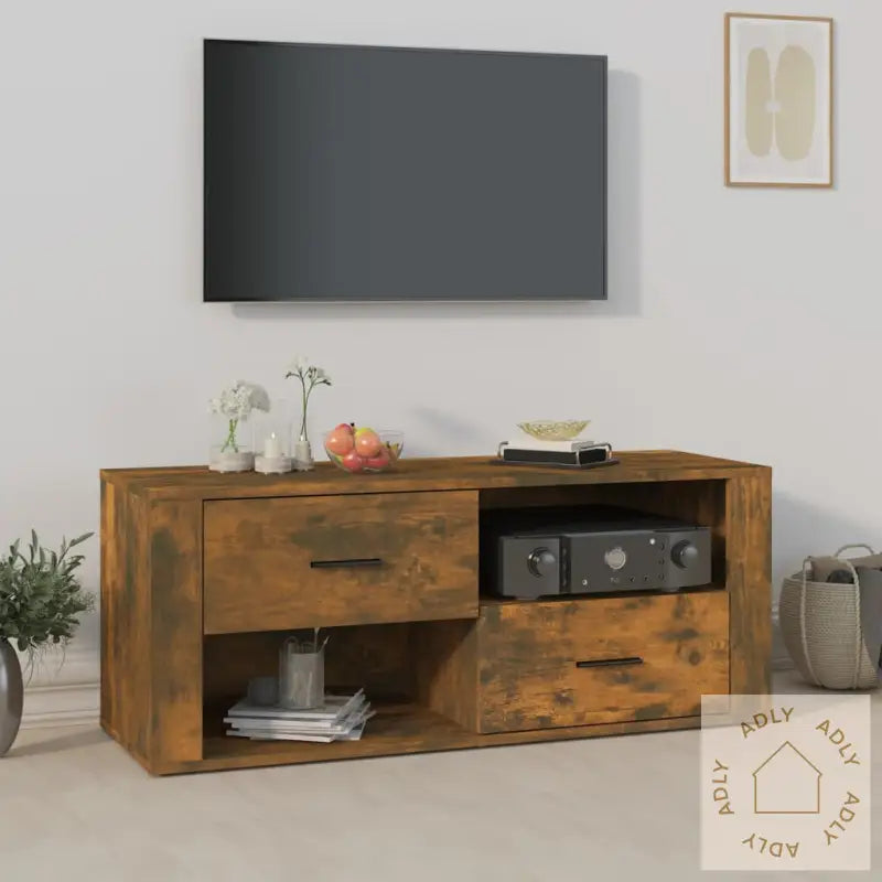 Bærekraftig og solid materiale: Den er laget av holdbart, konstruert tre, kjent for sin glatte overflate, styrke og stabilitet. Materialet tåler fuktighet godt, og gir deg en robust TV-benk som varer lenge – perfekt som en sentral del av dine møbler.Smarte oppbevaringsløsninger: Stereoskapet har god lagringsplass med skuffer og åpne rom, slik at du enkelt kan organisere alt fra DVD-spillere og spillkonsoller til streamingenheter og medietilbehør. Her får du orden på alt det nødvendige og slipper rot rundt underholdningsområdet.Stødig og praktisk topp: Den solide toppen gir et trygt sted for bøker, dekor og andre favorittgjenstander du ønsker å ha fremme – noe som gjør denne mediaenheten til et fleksibelt tilskudd blant dine øvrige møbler til hjemmet.Alle nødvendige monteringsdeler og enkel veiledning følger med, så du får raskt glede av din nye TV-benk.