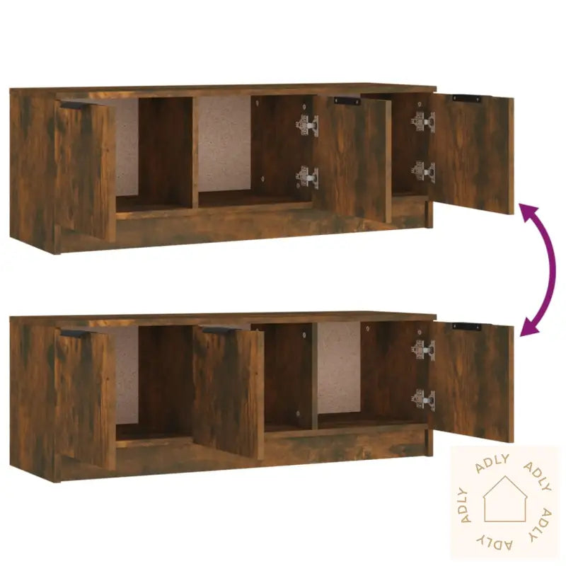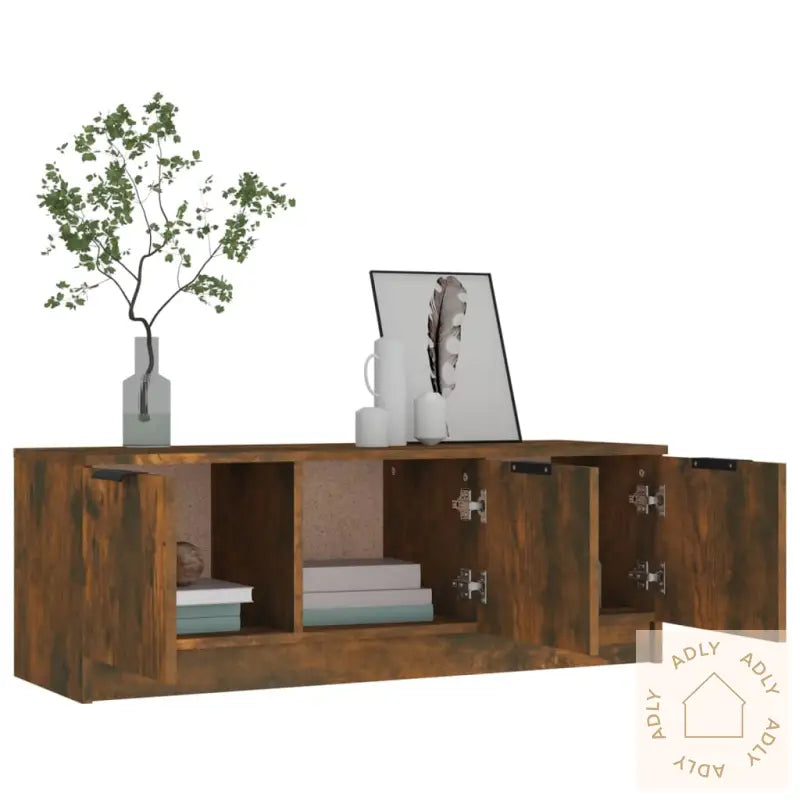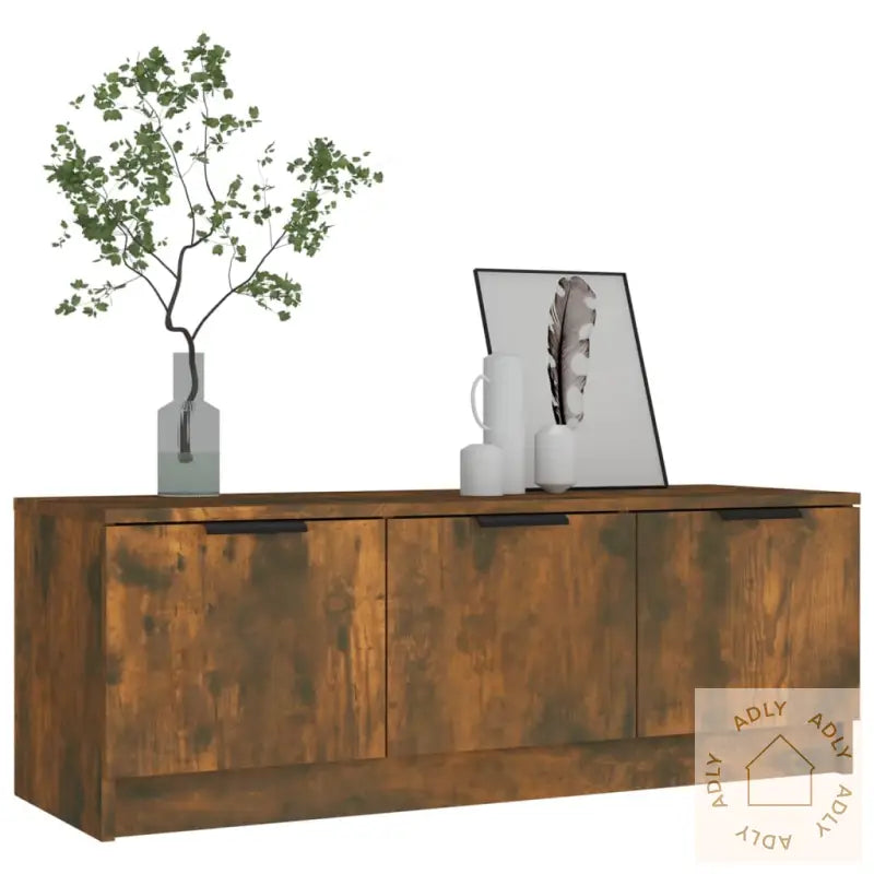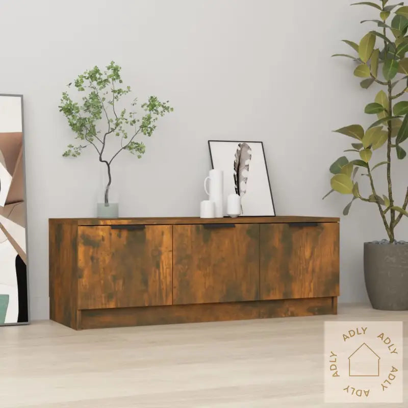 Solid materiale: Benken er laget av konstruert tre, et førsteklasses materiale kjent for sin jevne overflate og gode holdbarhet. Dette gir deg møbler til hjemmet som tåler daglig bruk, samtidig som de holder seg pene over tid. I tillegg har det god motstand mot fuktighet.Rikelig med lagringsplass: Med sine ulike rom og hyller, får du plass til alt fra DVD-spillere og spillkonsoller til streamingenheter og mediebærere. Alt kan organiseres lett tilgjengelig og ryddig. I tillegg er flere rom utstyrt med dører, noe som gir ekstra beskyttelse mot støv og holder tingene dine skjult og pene i stua eller hvor du måtte ønske å bruke benken sammen med andre møbler.Robust topp: Øvre flate er solid og stabil, så her kan du plassere bøker, planter eller favorittdekor, og virkelig gjøre benken til et midtpunkt blant møbler til hjemmet. Kombiner gjerne med andre fine detaljer for å skape din personlige stil.Fleksibel dør: Døren på midtrommet kan monteres enten til venstre eller høyre, slik at TV-benken enkelt kan tilpasses ulike romløsninger. Dette gir deg fleksibilitet om du ønsker å endre om på innredningen eller kombinere med nye møbler eller utendørsmøbler i nærliggende rom.Farge: røkt eikMateriale: konstruert treMål: 102 x 35 x 36,5 cm (B x D x H)Montering kreves: ja