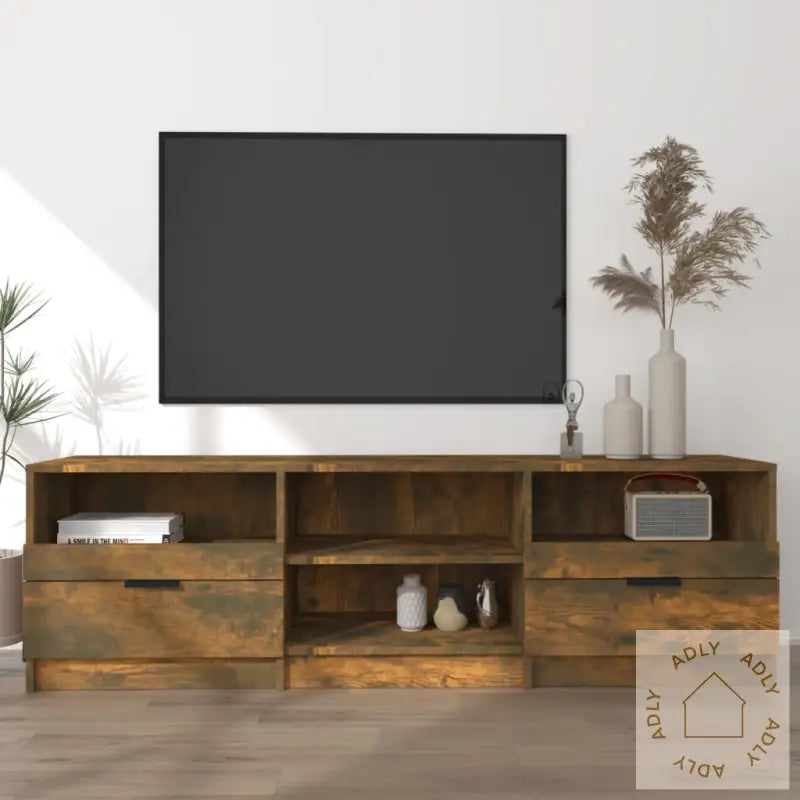 Premium materiale: Laget av konstruert treverk av eksepsjonell kvalitet, får du en glatt overflate som både ser bra ut og er enkel å holde ren. Materialet gir deg også styrke, stabilitet og god motstand mot fuktighet, noe som sikrer at TV-benken holder seg pen over tid.Rikelig med lagringsplass: Stereoskapet gir praktisk oppbevaring med både skuffer og hyller, så du enkelt kan holde orden på alt fra DVD-spillere og spillkonsoller til streamingenheter og annet tilbehør. Her får du mediene dine ryddig organisert og innen rekkevidde.Solid topp: Den solide toppen gir et stødig underlag for TV-en din, og gir samtidig plass til å vise frem dekorative elementer som fotorammer, potteplanter eller bøker. Dette gjør TV-benken til et naturlig samlingspunkt i stua, hvor stil og funksjonalitet møtes.Farge: røkt eikMateriale: konstruert treMål: 150 x 33,5 x 45 cm (B x D x H)Montering kreves: ja