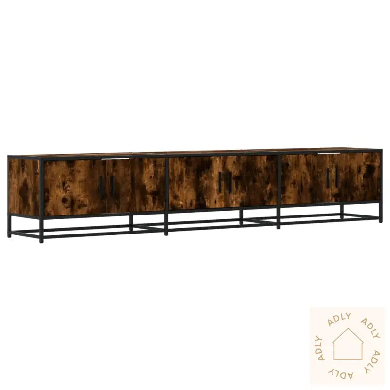 Stabilt og slitesterkt materiale: Laget av konstruert tre, har denne TV-benken en jevn overflate som effektivt står imot fuktighet, vridning og sprekker. Dette gir deg en solid og pålitelig base over tid – du får robuste hagemøbler eller innendørsmøbler som tåler hverdagens bruk.Stabil og langvarig ramme: Den solide rammen i metall tilfører en kul industrivri i rommet ditt, samtidig som den sikrer eksepsjonell holdbarhet. Metallet bidrar til økt stabilitet og motstandskraft mot korrosjon, så benken beholder utseendet sitt år etter år.Rikelig med oppbevaringsplass: Få orden på alt fra bøker og magasiner til DVD-er og multimedieenheter. Plassen gjør det enkelt å samle alt av elektronikkutstyr og bokhyller og stående hyller på ett sted – alt er godt organisert og lett tilgjengelig.Stabil og solid bordplate: På toppen har du maksimal lastekapasitet til å plassere TV-en, stereoanlegg eller pyntegjenstander, som vaser og potteplanter. Den solide platen gir ekstra trygghet, uansett hva du vil stille ut.Enkel å vedlikeholde: Materialene gjør at TV-benken kun trenger en rask avtørking med fuktig klut, ideelt for travle hjem der minimalt vedlikehold er viktig.Farge: røkt eikMaterialer: konstruert tre, metallMål: 210 x 35 x 41 cm (B x D x H)Maksimal lastekapasitet (topp): 30 kgMaksimal lastekapasitet (hvert rom): 15 kgMaksimal lastekapasitet (totalt): 60 kgMed 3 rom med dørerMontering kreves: ja