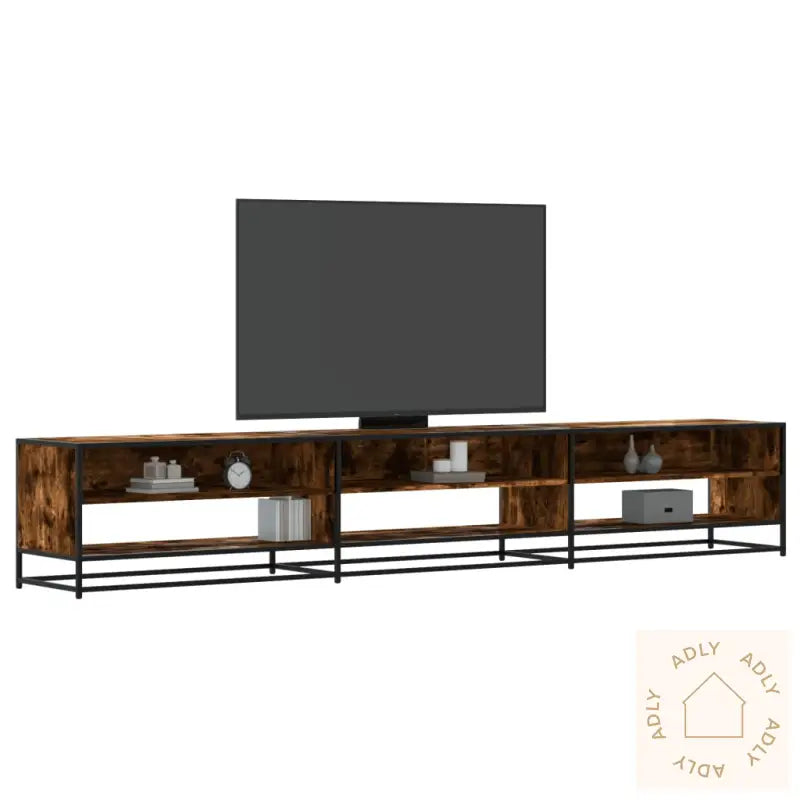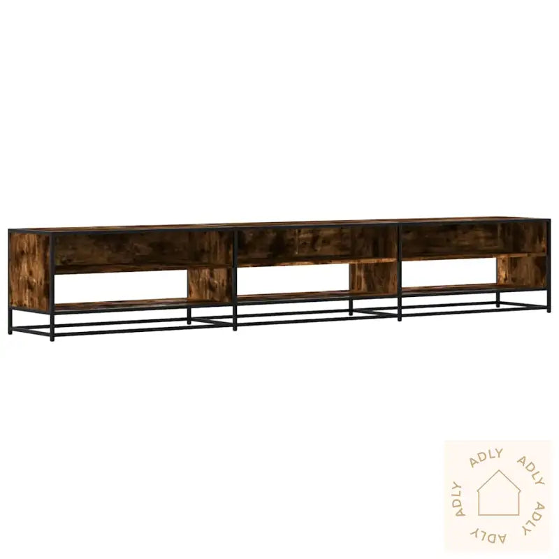 Stabilt og slitesterkt materiale: Benken er laget av konstruert tre, kjent for sin holdbarhet og stabile kvalitet. Materialet motstår fukt, vridninger og sprekker, så du får møbler som varer lenge og holder seg pene.Ramme i metall: Den robuste metallrammen gir TV-benken et kult, industrielt preg og sørger for at møbelet både ser bra ut og tåler daglig bruk. Rammen er dessuten motstandsdyktig mot korrosjon, noe som styrker benkens langvarige kvalitet.Rikelig med oppbevaringsplass: Med hele seks hyller får du god plass til å ordne tingene dine – alt fra bøker, blader og fjernkontroller til multimedieenheter. Dette bidrar til en ryddig og oversiktlig stue.Solid og funksjonell toppflate: Bordplaten er stødig nok til å bære TV, stereoanlegg og dekor – enten det er vase, bilder eller potteplanter – uten å gå på kompromiss med den maksimale lastekapasiteten.Lett å holde ren: Overflatene trenger bare en rask tørk med en fuktig klut, så vedlikeholdet av dette møbelet er minimalt og ukomplisert.Farge: Røkt eik gir et lunt, moderne utseende til interiøret ditt.Materialer: Slitesterkt konstruert tre kombinert med solid metallramme.Mål: 270 x 40 x 46 cm (B x D x H) – gir rikelig plass uten å ta opp for mye rom.Maksimal lastekapasitet per hylle: 15 kg – perfekt for elektroniske enheter og bøker.Maksimal lastekapasitet totalt: 70 kg – gir solid støtte til TV og pyntegjenstander.Totalt seks hyller for optimal organisering.Montering kreves – enkel å sette sammen med medfølgende instruksjoner.