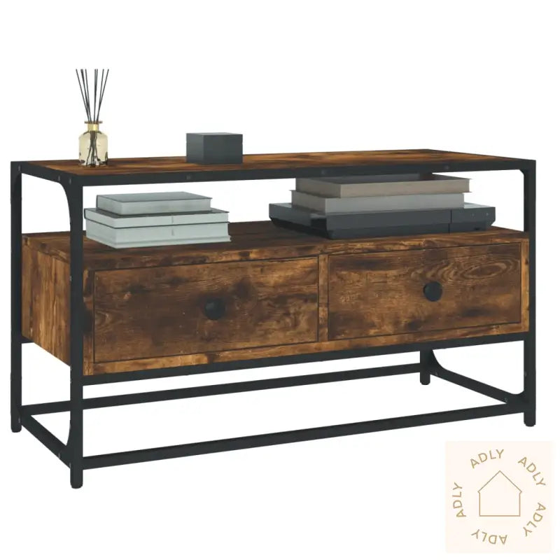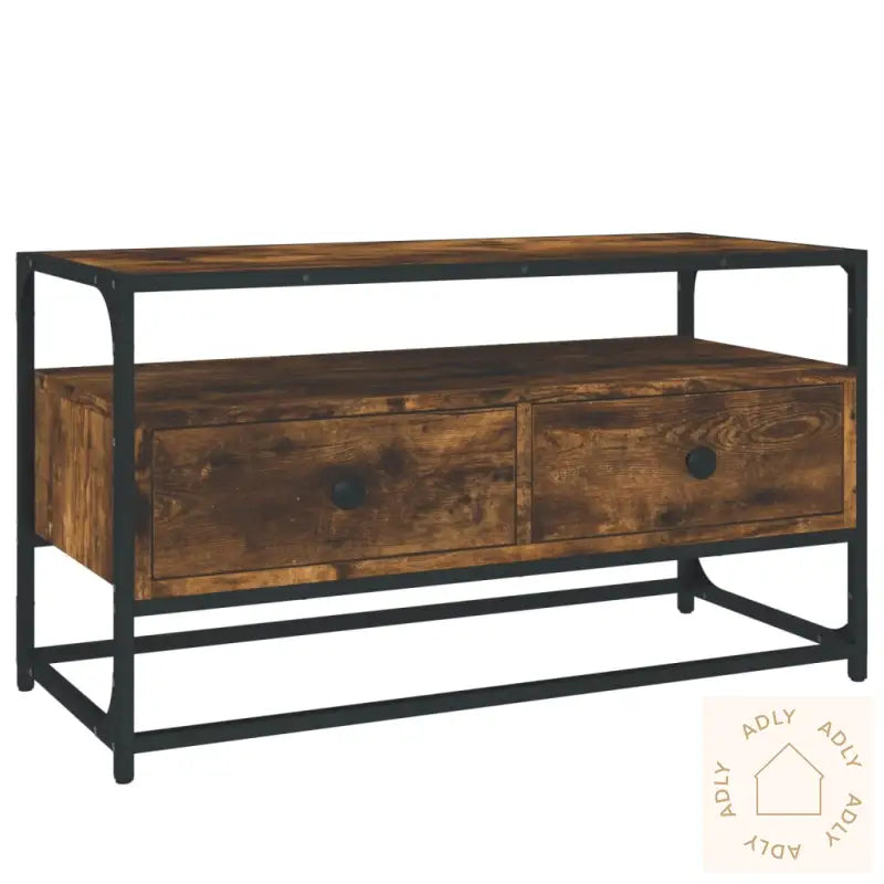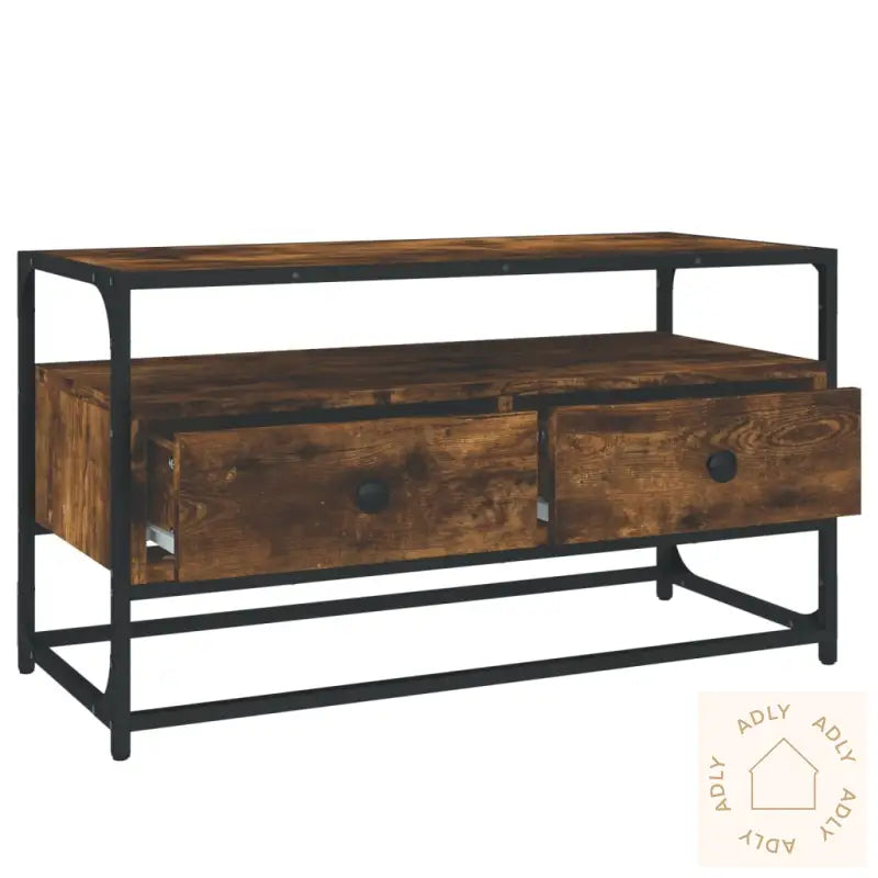 Slitesterkt materiale: Den er laget av konstruert treverk av høy kvalitet, som gir en jevn overflate og langvarig styrke. Dette materialet gir ikke bare møbelet stabilitet, men beskytter det også effektivt mot fuktighet – et solid valg når du ser etter slitesterke møbler til hjemmet.Rikelig med lagringsplass: Med sine to romslige skuffer gir TV-benken deg masse plass til å holde alt fra magasiner og DVD-er til fjernkontroller og tilbehør organisert og lett tilgjengelig.Robust bordplate: Overflaten på benken er stødig og ideell for å vise fram dekorative elementer, fotorammer eller potteplanter. Den robuste konstruksjonen gjør det mulig å plassere både TV og pyntegjenstander uten bekymring.Metallføtter: De pene metallføttene sørger ikke bare for solid stabilitet, men tilfører også et moderne uttrykk til interiøret ditt. Passer perfekt sammen med andre typer hagemøbler eller innendørs møbler.Farge: røkt eikMaterialer: konstruert tre, stålMål: 80 x 35 x 45 cm (B x D x H)Montering kreves: ja