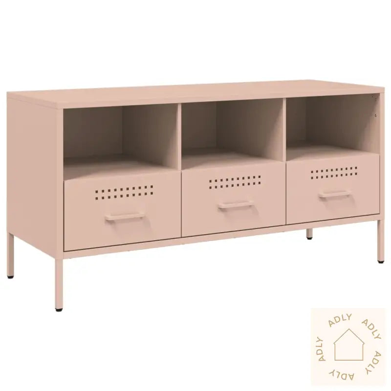 For å forhindre at TV-benken velter, må den sikres med den medfølgende festeanordningen.Farge: rosaMateriale: kaldvalset stålMål: 100,5 x 39 x 50,5 cm (L x B x H)Maksimal lastekapasitet: 30 kgUtstyrt med 4 justerbare skrueføtterInndelt i 3 rom og 3 skuffer for smart oppbevaringMontering kreves: jaLegal Documents: