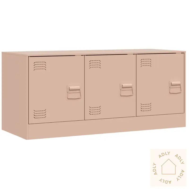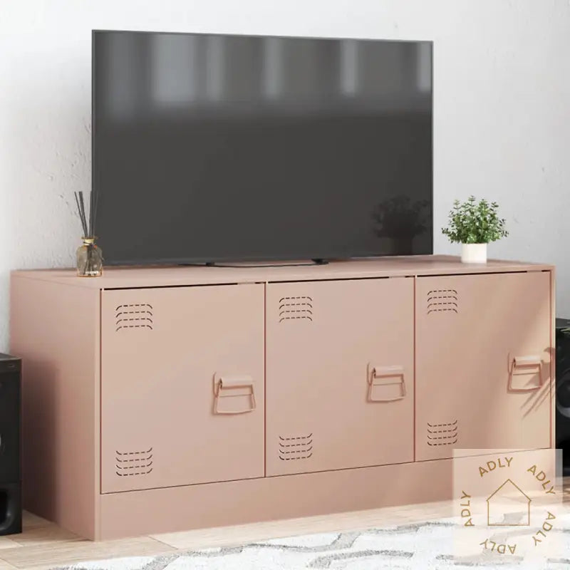 Stabilt materiale: Rammen på TV-benken er laget av robust kaldvalset stål, som gir ekstra holdbarhet og styrke. Kaldvalset stål er lavkarbonstål behandlet ved lave temperaturer, noe som resulterer i en glatt overflate, økt presisjon og lang levetid. Dette gjør benken ekstra solid og gir den et stilig, industrielt preg som passer inn i mange ulike interiørstiler.Rikelig med lagringsplass: Skapet har god plass til oppbevaring med tre rom bak lukkede dører – ideelt for bøker, magasiner, spill, fjernkontroller og alt annet du vil ha lett tilgjengelig, men samtidig ryddig bortgjemt. Du får mer orden i stua og unngår rot på TV-benken.Enkelt å vedlikeholde: Overflaten i kaldvalset stål gjør at bordet er svært enkelt å rengjøre – bare tørk over med en fuktig klut, så holder den seg pent uten mye vedlikehold. Det er perfekt for deg som ønsker møbler med lite vedlikeholdsbehov, men som fortsatt ser bra ut over tid.Praktisk håndtak: TV-benken har tre metallhåndtak, som gjør det lett å åpne og lukke dørene samtidig som de tilfører et dekorativt element. Disse detaljene gir benken et moderne og funksjonelt preg i kombinasjon med det stilrene designet.Farge: RosaMateriale: Kaldvalset stålMål: 99 x 39 x 44 cm (B x D x H)Egnet størrelse TV-skjerm: 51-76 cmMaksimal lastekapasitet: 80 kg3 rom med dørerMed 3 metallhåndtakMontering kreves: ja