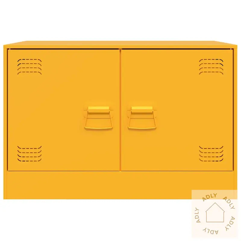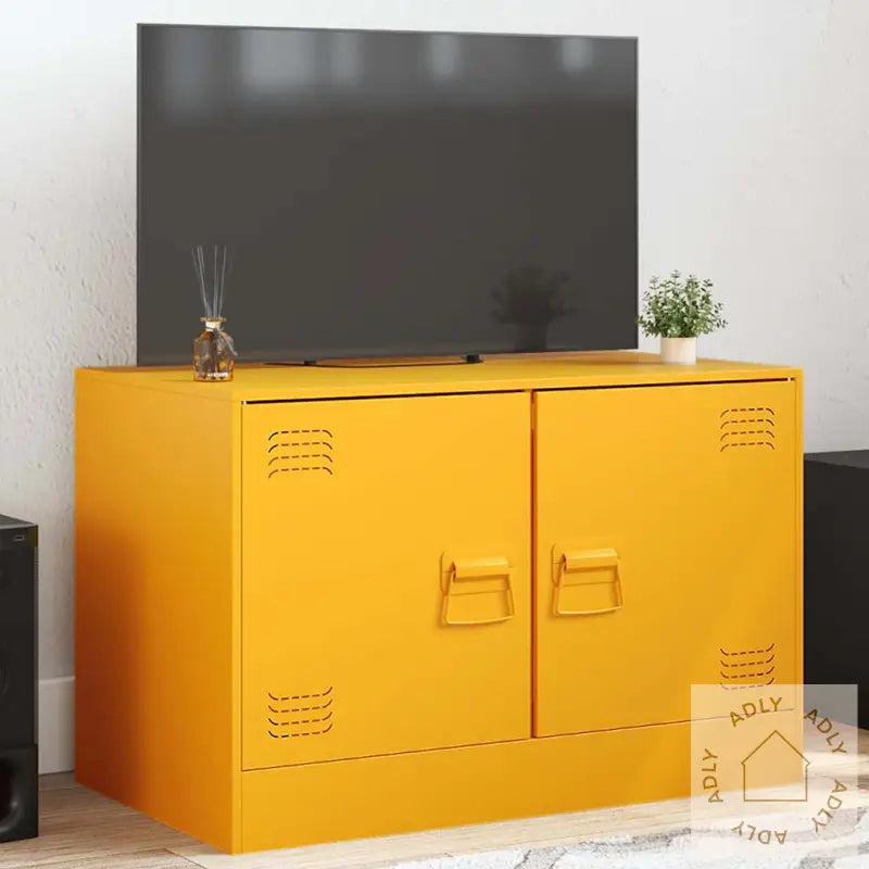 Praktiske håndtak: TV-benken har to solide metallhåndtak som gir enkel tilgang til skaprommene, samtidig som de tilfører ekstra stil til møbelet.Farge: SennepsgulMateriale: Kaldvalset stålMål: 67 x 39 x 44 cm (B x D x H)Passer for TV-skjermer: 51–76 cmMaksimal kapasitet: 70 kgTo separate rom med dører2 metallhåndtakKrever montering