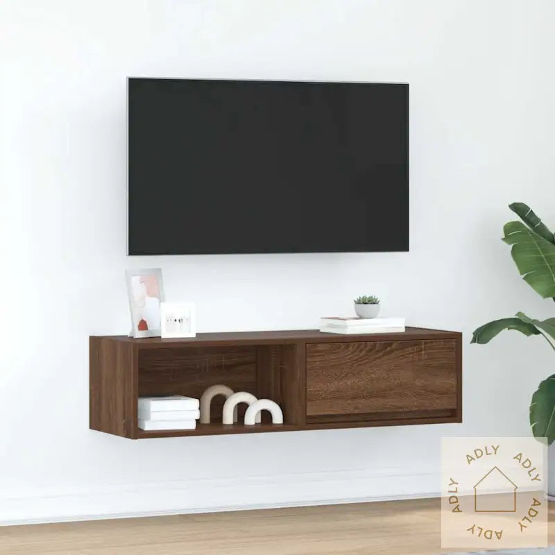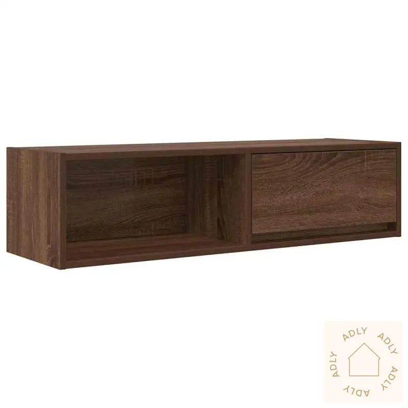 Stabilt og slitesterkt materiale: Laget av konstruert tre som er kjent for sin styrke og stabile struktur. Den glatte overflaten beskytter mot fuktighet og gjør møbelet motstandsdyktig mot vridning og sprekker – du får et holdbart produkt som tåler daglig bruk.Rikelig med oppbevaringsplass: Benken har god plass til både magasiner, bøker, DVD-er eller andre multimedieenheter – perfekt når du vil ha alt organisert og lett tilgjengelig i hjemmets viktigste samlingspunkt.Stabil og solid bordplate: Den robuste toppen holder enkelt både TV-en og stereoanlegget, og gir samtidig plass til dekor som vaser, potteplanter eller favorittbildene dine. Du kan skape akkurat det uttrykket du ønsker.Plassbesparende design: Med veggmontering får du frigjort gulvplass, som gir et rent, luftige og moderne preg på rommet. Smart oppbevaring og rom med mindre rot gjør det ekstra hyggelig hjemme.Enkel å vedlikeholde: Den glatte overflaten sikrer at TV-benken alltid ser flott ut og er enkel å rengjøre med en fuktig klut – minimalt med vedlikehold, maksimalt med stil. Passer like godt sammen med andre møbler til hjemmet.Farge: brun eikMateriale: konstruert treSamlet mål: 100 x 31 x 25,5 cm (B x D x H)Skuffedimensjoner: 47 x 23,5 x 19,5 cm (B x D x H)Totalt maks. vektkapasitet: 60 kgMaks. vektkapasitet per hylle: 20 kgMaks. vektkapasitet per skuff: 5 kgMed 1 skuffe og 1 hylleMontering kreves: ja