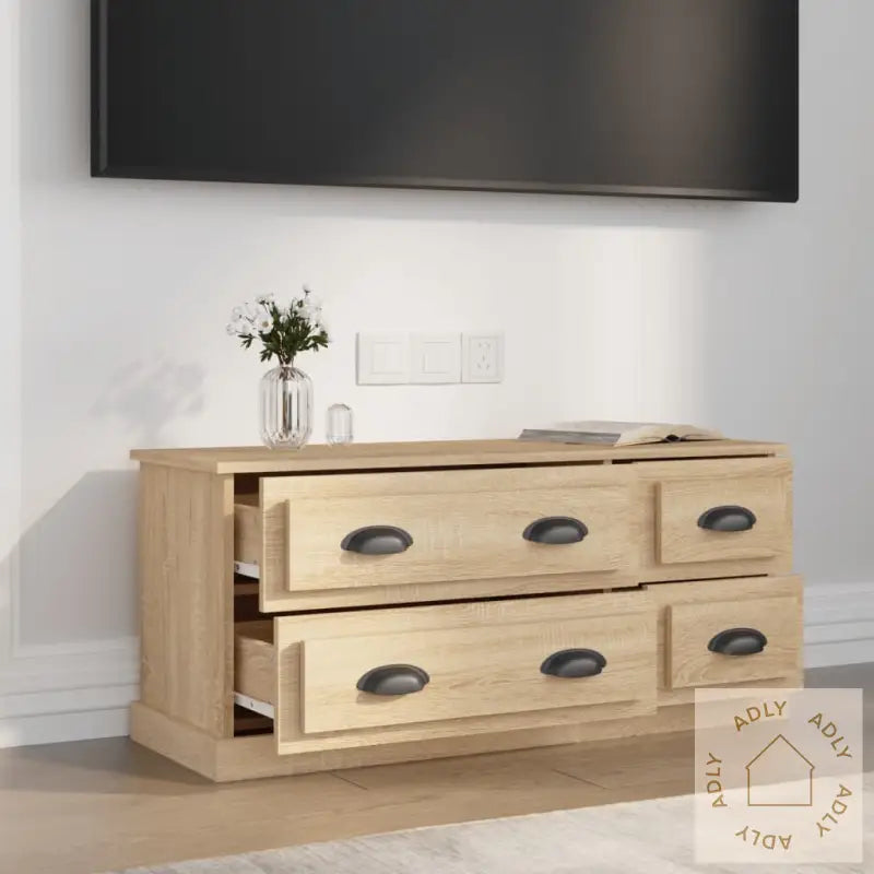 Hver TV-benk leveres med en enkel manual, slik at monteringen går som en lek.Farge: Sonoma eikMateriale: Konstruert treMål: 100 x 35,5 x 45 cm (B x D x H)