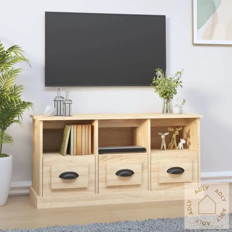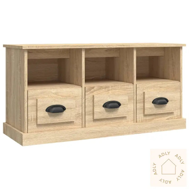 Denne trendy TV-benken i sonoma eik kombinerer elegant design med moderne funksjonalitet, noe som gjør den til et både dekorativt og svært praktisk innslag blant andre møbler til hjemmet. Med sitt stilrene uttrykk passer denne TV-benken sømløst inn i de fleste rom og gir rommet et oppdatert og innbydende preg.