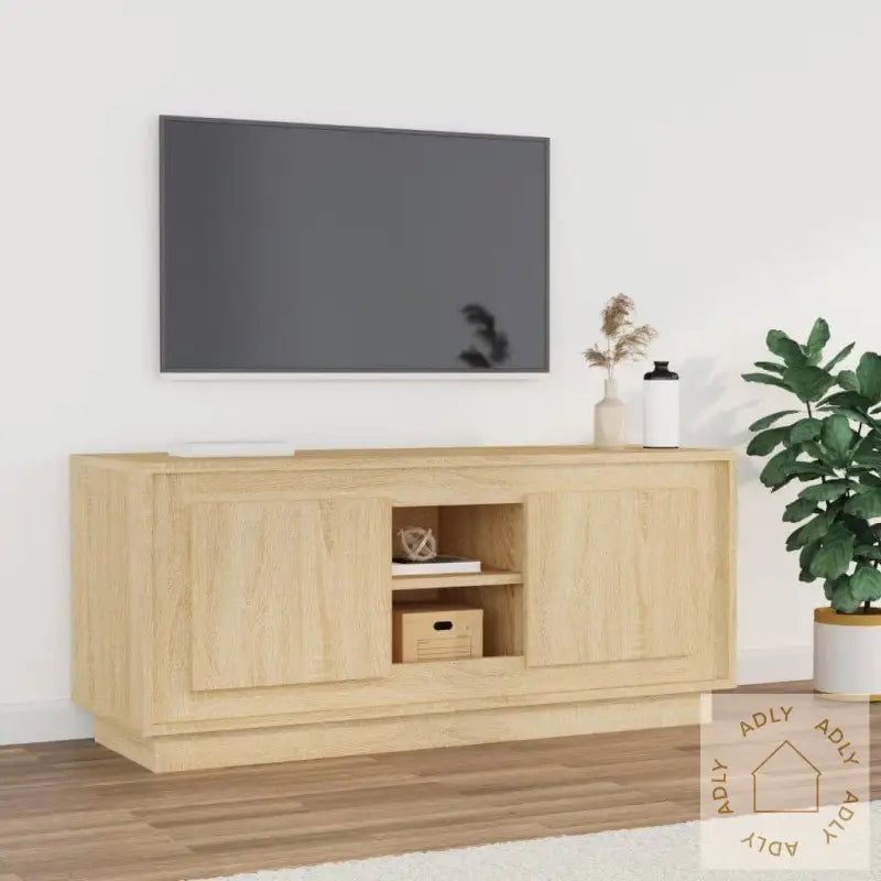 - Slitesterkt materiale: TV-benken er laget av konstruert tre av høy kvalitet, noe som gir en solid og stabil konstruksjon. Overflaten er glatt og enkel å rengjøre, og materialet er motstandsdyktig mot både fuktighet og daglig bruk – perfekt for aktive hjem eller som en del av dine nye møbler til hjemmet.