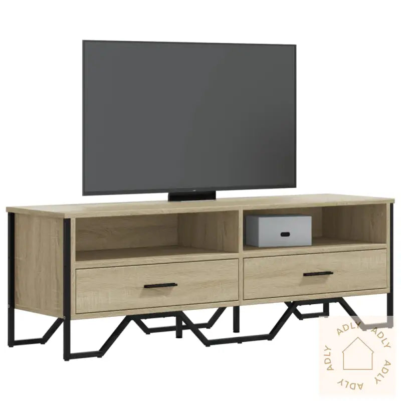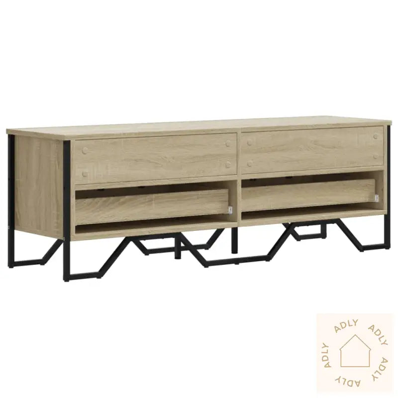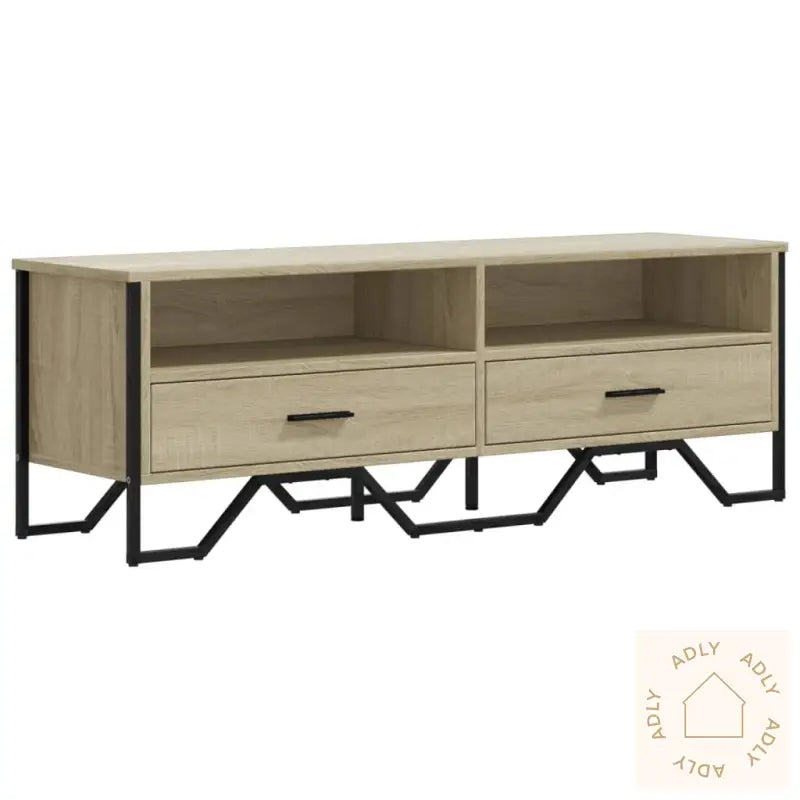 Stabilt og slitesterkt materiale: TV-benken er laget av konstruert tre, et robust og stabilt materiale med jevn overflate. Den tåler daglig bruk godt og holder seg pen over tid, siden den er motstandsdyktig mot fuktighet, vridning og sprekker. Det gjør den til et pålitelig valg blant moderne møbler, enten den plasseres blant hagemøbler, på barnerommet eller i stua.Rikelig med oppbevaringsplass: Med flere åpne og lukkede rom får du masse plass til å holde orden på magasiner, bøker, DVD-er og alle typer multimedieutstyr, slik at alt er ryddig og enkelt å finne frem til når du trenger det.Metallhåndtak: De solide metallhåndtakene gir et stilrent og moderne uttrykk med et hint av industriell stil, samtidig som de gjør det enkelt å åpne og lukke skuffer og skap.Enkel å vedlikeholde: Overflaten gjør benken superenkel å rengjøre – det holder å tørke over med en fuktig klut, så benken ser alltid ren og fin ut uten mye vedlikehold.Stabil og solid bordplate: Den solide toppflaten tåler vekten av en stor TV, stereoanlegg eller pynteting som vaser og potteplanter, slik at du kan gjøre akkurat den stylingen du vil ha blant dine møbler til hjemmet.Farge: sonoma eik – en lys, naturlig trefarge som skaper en varm og koselig stemning sammen med dine andre møbler.Materialer: konstruert tre og metall – gir både styrke og et moderne utseende.Mål: 122 x 34 x 41 cm (B x D x H) – passer perfekt under de fleste TV-er.Maksimal lastekapasitet (totalt): 60 kg – trygg og stødig oppbevaring for alt utstyret ditt.Montering kreves: ja – enkel montering med medfølgende instruksjoner.