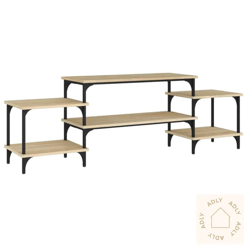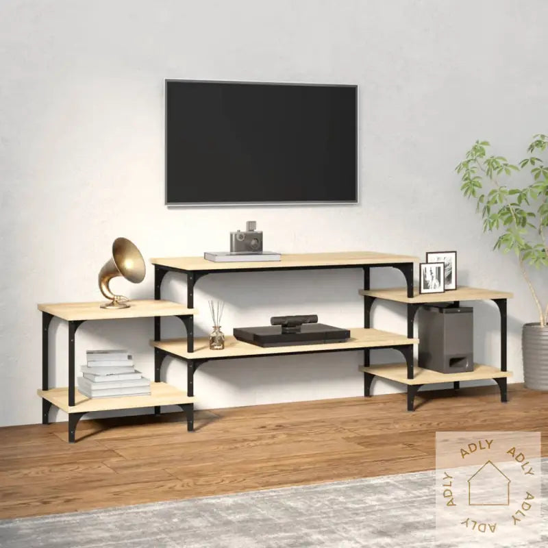 Slitesterkt materiale: TV-benken er laget av konstruert treverk av høy kvalitet, som gir en jevn overflate samtidig som det gir styrke og stabilitet. Dette materialet er kjent for sin gode motstand mot fuktighet, noe som sikrer at møbelet holder seg pent over tid selv ved daglig bruk.Rikelig med lagringsplass: Med flere åpne hyller og lukkede rom har du god plass til å organisere og oppbevare alt fra magasiner og spill til DVD-er og annet tilbehør. Alt holdes enkelt unna, slik at rommet får et ryddigere og mer innbydende miljø.Robust bordplate: Den solide toppflaten gir et perfekt sted til å vise personlige gjenstander, fotorammer eller potteplanter. Plass til både dekor og elektronikk gjør dette til en funksjonell TV-benk som passer inn i ulike interiørstiler.Justerbare ben: De justerbare bena gjør at medieskapet står stødig selv på ujevne gulv, så du slipper vingling og får en trygg løsning for TV-en og annet utstyr.Advarsel: