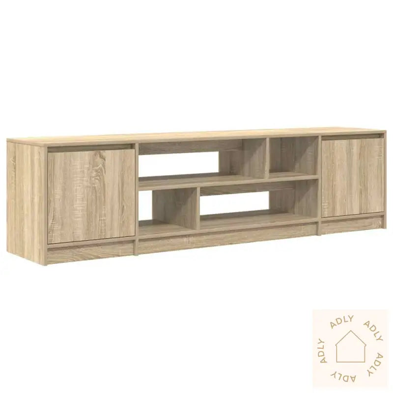 Stabilt og slitesterkt materiale: Den er laget av konstruert tre i fargen sonoma eik, noe som gjør benken robust og motstandsdyktig mot fuktighet, vridning og sprekker. Dette gir lang levetid og gjør den til et pålitelig valg for deg som ønsker holdbare møbler.Rikelig med oppbevaringsplass: Med flere hyller og rom har du rikelig plass til å samle magasiner, bøker, DVD-er og alle multimedieenheter du trenger samlet på ett sted. Dette gjør det enkelt å organisere og skaper et ryddig uttrykk i rommet.Stabil og solid bordplate: Den store, solide toppflaten gir deg plass til TV-en din, stereoanlegg og pyntegjenstander som vaser, rammer eller potteplanter, slik at du kan gi stuen et personlig preg.Praktiske dører: De to dørene sørger for en ryddig flate ved å skjule småting og rot, slik at oppbevaringen ser pen ut og hjemmet fremstår stilrent.Enkel å vedlikeholde: Overflaten er lett å tørke ren med en fuktig klut, så benken trenger minimalt med vedlikehold over tid – perfekt når du ønsker praktisk komfort fra møbler i hjemmet ditt.Advarsel: