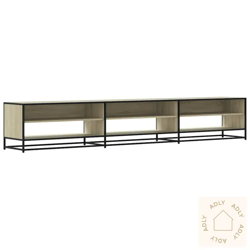 Stabilt og slitesterkt materiale: Benken er laget av konstruert tre, et robust materiale kjent for sin jevne overflate og motstandsdyktighet mot fukt, vridning og sprekker. Dette gjør at du får møbler som tåler daglig bruk og varer lenge.Solid og varig ramme: Den sterke metallrammen gir ikke bare et kult, industrielt uttrykk, den sørger også for stabilitet og styrke. Materialet beskytter mot rust og gir TV-benken ekstra lang holdbarhet, selv ved høy maksimal lastekapasitet.Rikelig med oppbevaringsplass: Med seks hyller får du orden på alt fra magasiner og bøker, til DVD-er og multimedieenheter. Alt er lett tilgjengelig, slik at rommet ditt holder seg ryddig og innbydende.Sikker og stødig bordplate: Den solide toppen er perfekt for å plassere både TV, lydanlegg eller pyntegjenstander som vaser og grønne planter. Du kan stole på at utstyret ditt står trygt her, takket være solid konstruksjon og høy maksimal lastekapasitet per lag.Enkel rengjøring: TV-benken krever minimalt vedlikehold – en rask tørk med en fuktig klut er alt som skal til for at den ser like fin ut, år etter år.Farge: Sonoma eik, som gir en varm og naturlig følelse til interiøretMaterialer: Konstruert tre og metall gir benken både styrke og et trendy uttrykkMål: 270 x 40 x 46 cm (B x D x H) gir rikelig plass til både TV og tilbehørMaksimal lastekapasitet: 15 kg per lag, totalt 70 kg – mer enn nok for det meste av elektronikk og pyntMed 6 praktiske hyller for optimal organiseringMonteringen er enkel og rett frem, så du får glede av nytt møbel raskt