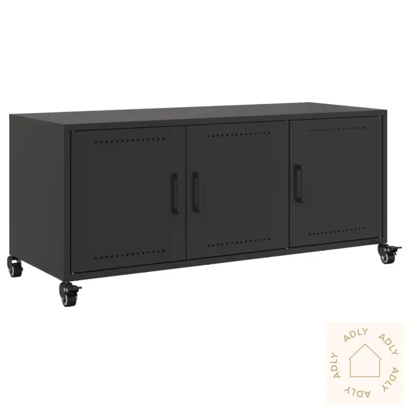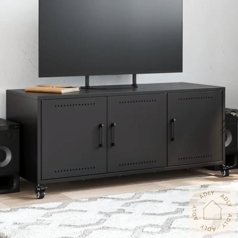 Lett å flytte: Utstyrt med fire hjul, kan TV-benken enkelt rulles dit du ønsker i rommet og låses på plass for stabilitet. Dette gjør det ekstra lett hvis du vil ommøblere og forandre uttrykket på dine møbler til hjemmet.Farge: svartMateriale: kaldvalset stålMål: 100,5 x 39 x 43,5 cm (L x B x H)Montering kreves: ja