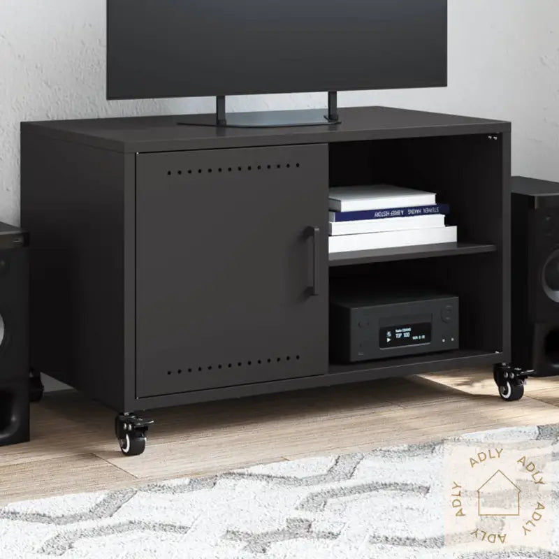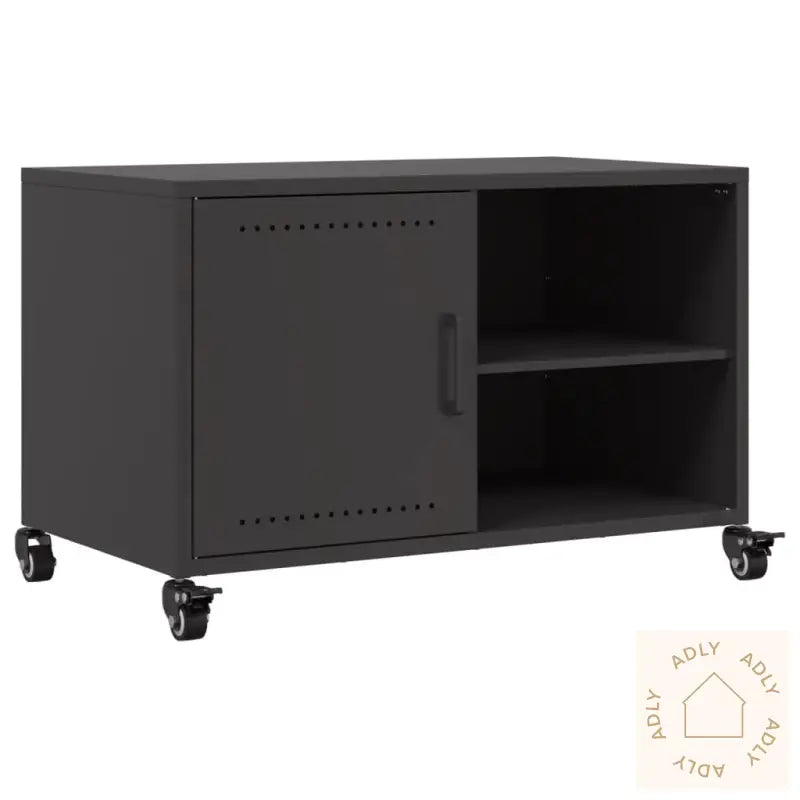 Slitesterkt materiale: Stål er et solid og sterkt materiale som gir langvarig stabilitet til TV-benken. Kaldvalsede stålplater sikrer høy kvalitet på overflaten, presise mål og gjør at benken tåler daglig bruk uten problemer.Visningsmuligheter: Den robuste toppen av mediebenken gir god plass til å vise frem dine favoritter som bilder, grønne planter, bøker eller dekor – akkurat som på bokhyller og stående hyller.Romslig oppbevaring: Med en praktisk dør og to hyller kan du enkelt organisere magasiner, DVD-er, spill eller andre småting som ofte blir liggende fremme. Slik får du et ryddig og oversiktlig hjem.Lettstelt: Overflaten på TV-benken er flekkbestandig og krever minimalt vedlikehold. Bare tørk lett over for å holde den pen i hverdagen – perfekt for deg som vil ha møbler som ser bra ut uten mye styr.Enkel å flytte: Med fire hjul kan du raskt og enkelt flytte benken dit du trenger den mest – enten du skal ommøblere stua, gjøre rent, eller kombinere den med andre hagemøbler og løsninger i hjemmet. Hjulene kan låses så benken står stødig når den er på plass.Farge: svartMateriale: kaldvalset stålMål: 68 x 39 x 43,5 cm (L x B x H)Montering kreves: ja