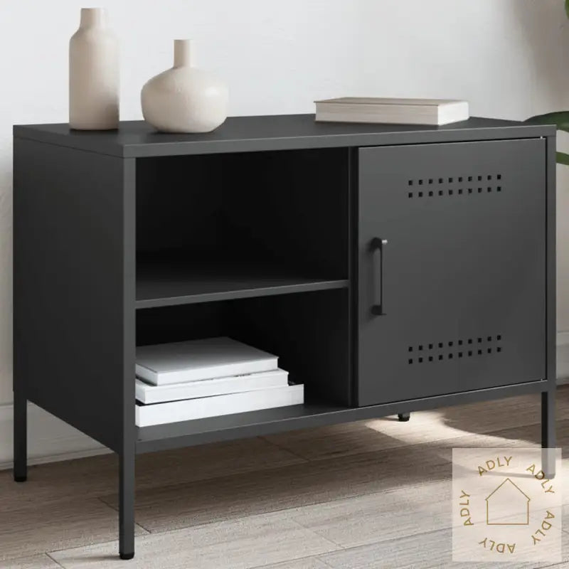 Robust og stabil ramme: Den solide stålrammen sørger for at TV-benken står stødig og tåler daglig bruk i lang tid. Stål er kjent for ekstra styrke og slitestyrke, noe som gir trygghet når du plasserer både TV og annet utstyr på benken.Rikelig med oppbevaringsplass: Med ett rom bak en dør og to åpne hyller får du ryddig plass til magasinene dine, fjernkontroller, bøker, DVD-er og diverse multimedieenheter. Dette gjør det lett å holde orden i oppholdsrommet og ha tingene du bruker mest, lett tilgjengelig.Enkel å rengjøre: Overflater i stål krever minimalt med vedlikehold og kan lett tørkes av med en fuktig klut, noe som gjør denne TV-benken ideell for travle hverdager og familier som ønsker møbler til hjemmet som er både praktiske og enkle å holde pene.Advarsel: