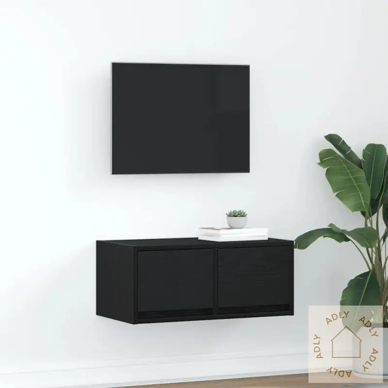 Stabilt og slitesterkt materiale: Den er laget av konstruert tre, et robust og stabilt valg som tåler daglig bruk. Overflaten er jevn og motstandsdyktig mot fuktighet, så du trenger ikke bekymre deg for riper eller vannskader. Dette gjør den ekstra holdbar, noe som er viktig når du velger møbler til hjemmet.Rikelig med oppbevaringsplass: Benken har stor kapasitet for oppbevaring. Her kan du oppbevare magasiner, bøker, DVDer og alt av multimedieutstyr. Du får orden på alt rotet og kan enkelt holde stua ryddig.Stabil og solid bordplate: Platen på toppen er solid nok til å bære større TV-er, stereoanlegg, eller personlige dekorasjoner som vaser og grønne planter. Det gir deg frihet til å sette ditt eget preg på rommet.Plassbesparende design: Siden denne TV-benken monteres på veggen, får du økt lagringsplass uten at det går ut over gulvplassen. Ideell løsning for små rom eller for deg som liker et minimalistisk uttrykk.Enkel å vedlikeholde: Den glatte overflaten gjør det lett å holde benken ren. Bare tørk av med en fuktig klut, så ser den like fin ut år etter år, helt uten behov for mye vedlikehold.Farge: svart eikMateriale: konstruert treStørrelse: 60 x 31 x 25,5 cm (B x D x H)Skuffedimensjoner: 27 x 23,5 x 19,5 cm (B x D x H) per skuffTotalt maks. vektkapasitet: 60 kgMaks. vekt per skuff: 5 kg2 skuffer for enkel organiseringKrever montering
