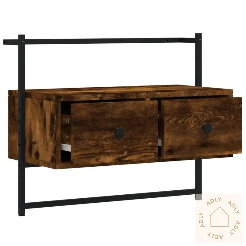 Farge: røkt eikMaterialer: konstruert tre, metallMål: 60,5 x 30 x 51 cm (B x D x H)Montering kreves: ja