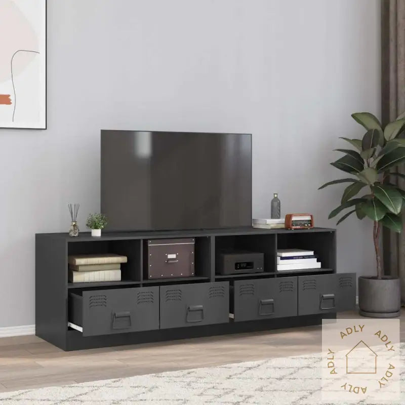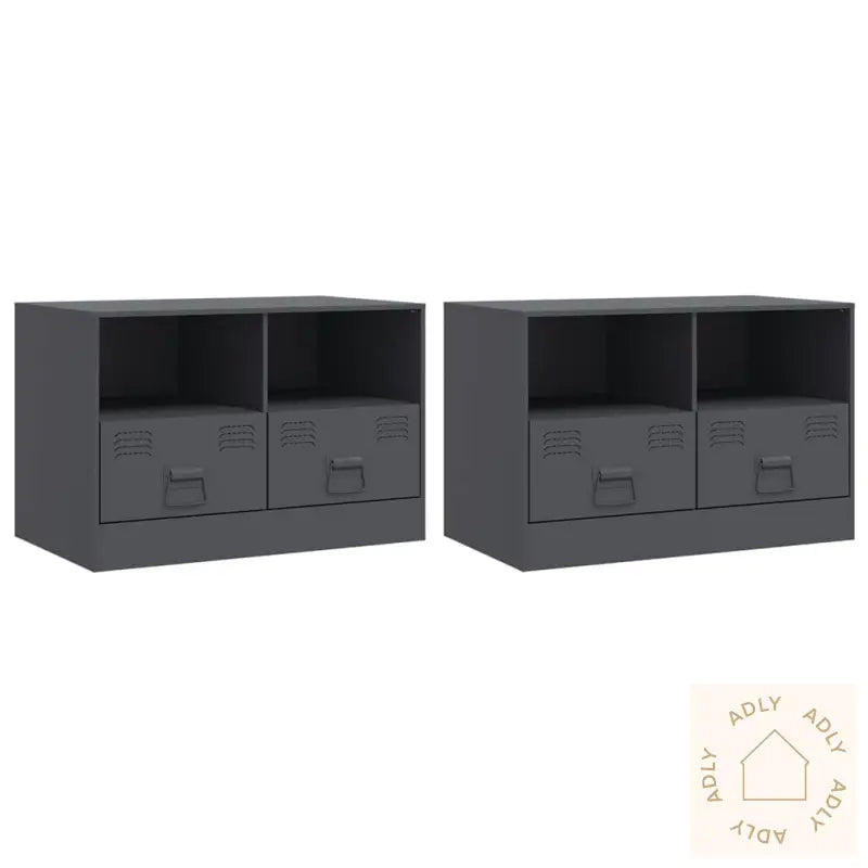 Stabilt materiale: Rammen på TV-benken består av kaldvalset stål, noe som gir høy styrke og holdbarhet. Kaldvalset stål er kjent for penere finish, robusthet og presisjon, og benyttes ofte i kvalitetsmøbler til hjemmet og utendørsmøbler fordi det tåler daglig bruk over tid uten å miste glansen.Rikelig med lagringsplass: Skapet byr på god lagringsplass som holder magasiner, bøker, fjernkontroller og hverdagsgjenstander ryddig og lett tilgjengelig. Perfekt når du vil ha alt samlet nær TV-en eller i stua!Enkelt vedlikehold: Overflater i kaldvalset stål er lette å tørke av med en fuktig klut, så disse TV-benken krever minimalt med vedlikehold. Rengjøringen blir enkel og effektiv – like praktisk som den er stilig.Praktiske håndtak: Benken har 2 hendige metallhåndtak som gjør skapene enkle å åpne og lukke, samtidig som detaljene setter prikken over i-en på designet.Farge: AntrasittMateriale: Kaldvalset stålMål: 67 x 39 x 44 cm (B x D x H)Passer perfekt for TV-skjermer fra 51-76 cmMaksimal lastekapasitet per benk: 90 kg, så her får du plass til det mesteKommer med to hyller og to skuffer for organisert oppbevaringUtstyrt med 2 metallhåndtak for enkel brukMontering krevesLeveringen inneholder:2 x TV-benker