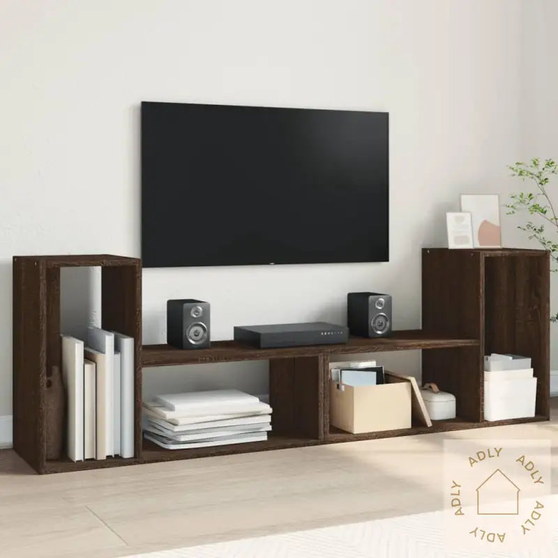 Det slitesterke materialet sikrer at TV-benken holder seg pen lenge, selv med mye i bruk, noe som gjør den til et smart valg for deg som er opptatt av kvalitet og design når det gjelder møbler til hjemmet.Med fire åpne rom får du masse plass til å organisere alt fra magasiner, bøker, DVD-er til større multimedieenheter – perfekt for deg som vil ha orden og enkel tilgang til favorittene dine.Kombinasjonen av TV-benk og bokhylle gir deg fleksibilitet til å innrede etter behov; bruk den til TV-en og multimedia, eller la den fungere som utstillingsplass for bøker, blader og pyntegjenstander.Benken leveres i den populære brun eik-fargen, et tidløst valg som matcher andre hagemøbler eller utendørsmøbler om du ønsker en gjennomført stil i hjemmet.Størrelsen på 75 x 30 x 50 cm (B x D x H) gjør at TV-benken passer flott også i mindre rom, uten å ta for mye plass.Montering kreves, slik at du enkelt kan sette sammen benken hjemme.Leveransen inkluderer:2 x TV-benker