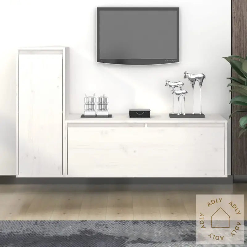 Farge: hvitMateriale: heltre furuMontering kreves: jaLeveransen inneholder:1 x TV-benk: 100 x 30 x 35 cm (B x D x H)1 x TV-benk: 30 x 30 x 80 cm (B x D x H)