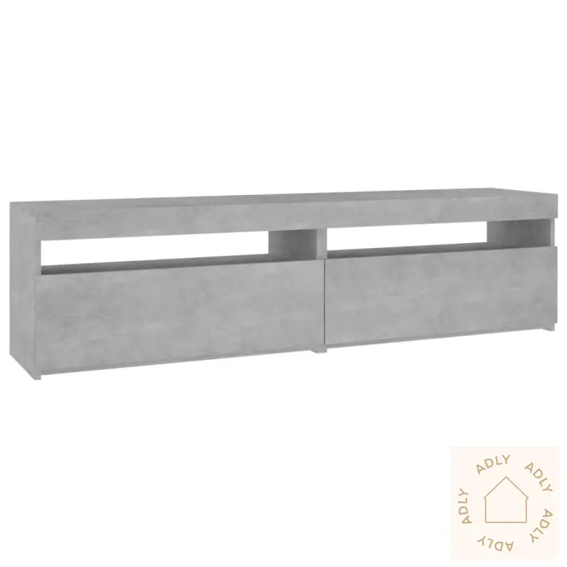 Fargerikt LED-lys: Lyset gir ekstra dimensjon til stuen og gjør det ekstra gøy å slappe av foran TV-en etter en lang dag.Moderne stil: De rene linjene og den myke betonggrå fargen sørger for at TV-benken smelter sømløst inn i både nye og eksisterende interiører, og oppgraderer hele rommets uttrykk på en diskret, men tydelig måte.Rikelig med oppbevaringsplass: Praktiske rom under benkeplaten gir masse plass til alt fra spill og fjernkontroller til bøker eller pyntegjenstander. Enklere blir det ikke å holde orden på tingene sine!Merk: