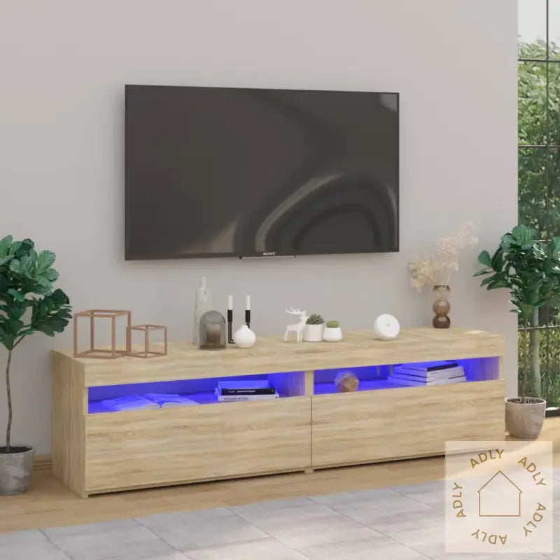 Fargerikt LED-lys: Skap stemning og sett farge på kveldene med innebygde RGB LED-lys! De mange fargealternativene gjør det lett å tilpasse lyset etter humør eller anledning, og det hele styres enkelt via USB.Moderne stil: Rene linjer og et minimalistisk uttrykk gir benkene et tidløst utseende som passer inn i de fleste interiør. Den moderne stilen gjør at de enkelt kan kombineres med både klassiske og mer trendy møbler – perfekt hvis du liker å fornye hjemmet innimellom. Sonoma eik gir et lyst og naturlig preg, som skaper en koselig atmosfære og fremhever romfølelsen.Rikelig med oppbevaringsplass: Med romslige hyller og skap får du orden på alt fra spill og fjernkontroller til bøker og dekorasjoner. Praktisk løsning for deg som vil ha det ryddig rundt TV-en uten å ofre stil.Merk:
