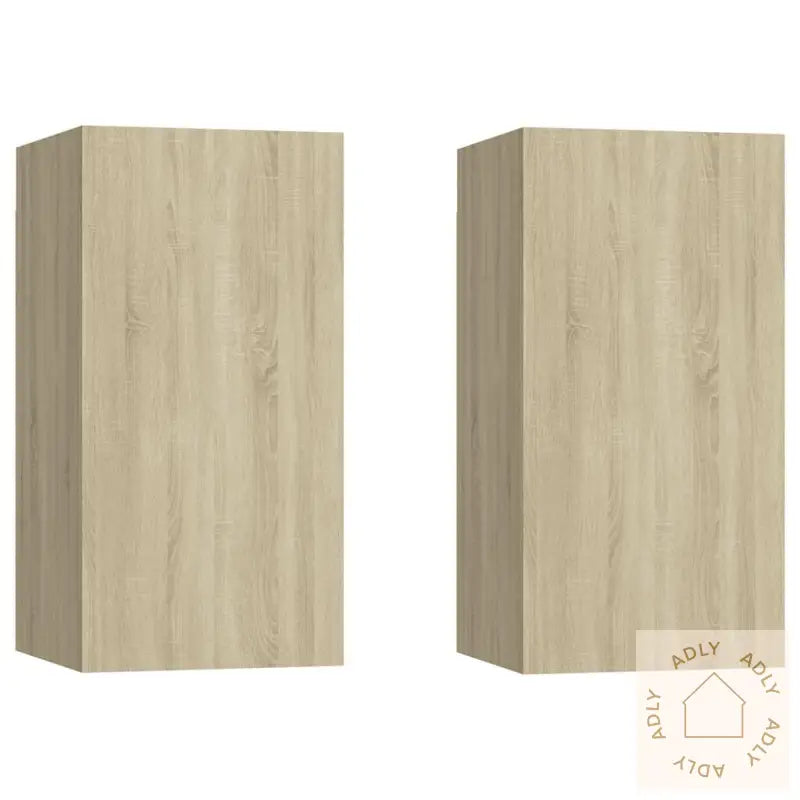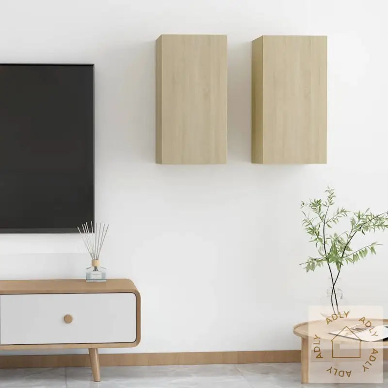 De veggmonterte TV-benkene er laget av slitesterk sponplate, noe som sikrer en solid og stabil konstruksjon. Overflaten i sonoma eik gir et lunt og tidløst preg, som enkelt kan matches med andre møbler til hjemmet. Hver benk har to romslige hyller som gir god plass til å organisere bøker, magasiner, DVD-er og andre ting du trenger lett tilgjengelig. Dette gir deg muligheten til å holde stuen ryddig samtidig som du får vist frem personlige eiendeler.