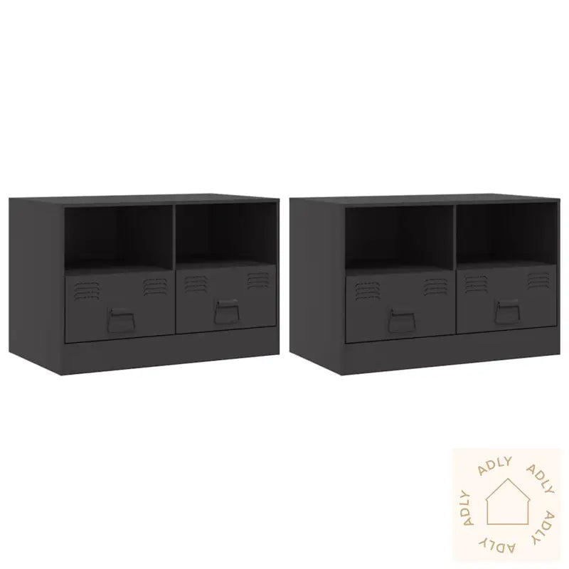 Praktisk håndtak: TV-benken leveres med 2 solide metallhåndtak; de gjør det enkelt å åpne og lukke dørene og gir samtidig en ekstra touch til designet.Farge: svartMateriale: kaldvalset stålMål: 67 x 39 x 44 cm (B x D x H)Egnet størrelse TV-skjerm: 51-76 cmMaksimal lastekapasitet: 90 kgMed 2 hyller for mer fleksibel oppbevaringMed 2 skuffer til småting og tilbehørMed 2 metallhåndtakMontering kreves: jaLeveransen inneholder:2 x TV-benk i solid kaldvalset stål