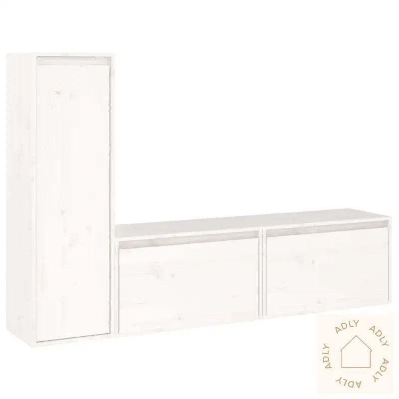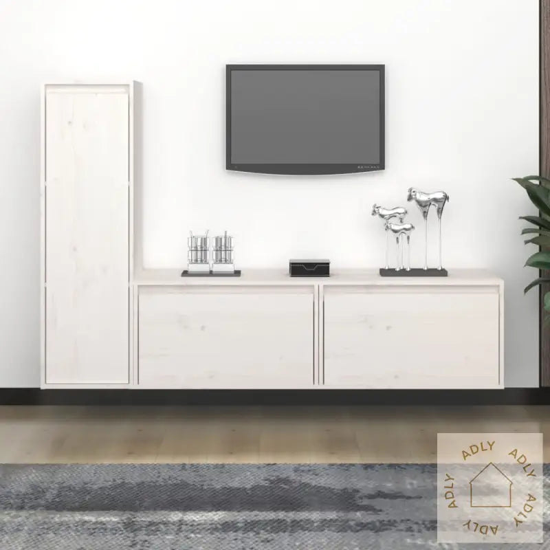 Farge: hvitMateriale: heltre furu – kjent for holdbarhet og naturlig utseendeMontering kreves: jaLeveransen inneholder:2 x TV-benker: 60 x 30 x 35 cm (B x D x H)1 x TV-benk: 30 x 30 x 100 cm (B x D x H)